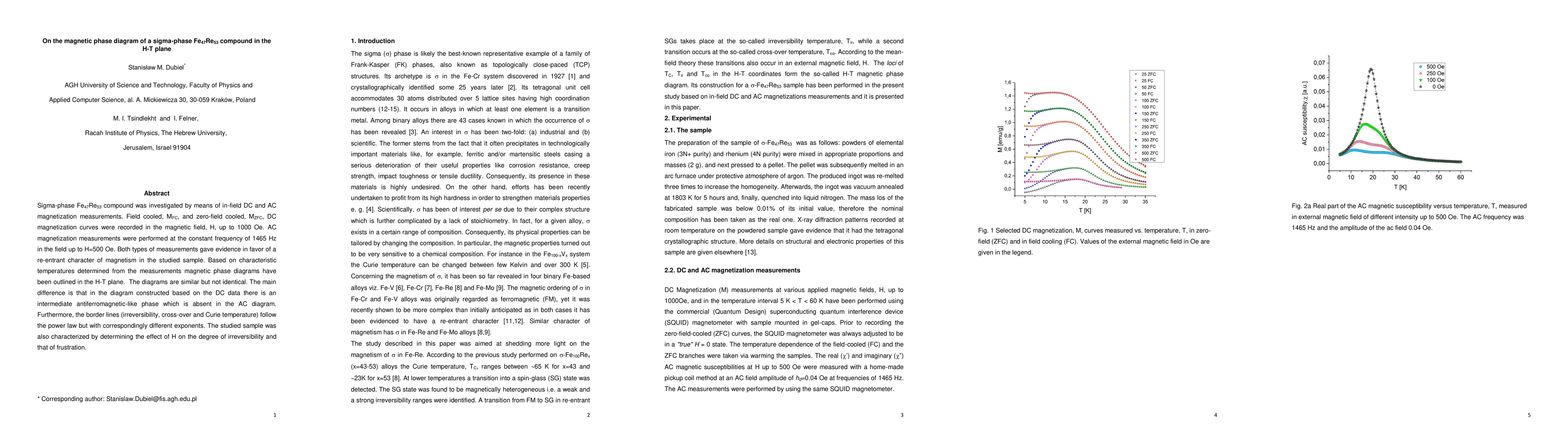 This paper investigates the magnetic phase diagram of the sigma-phase Fe47Re53 compound using DC and AC magnetization measurements, revealing a re-entrant magnetic behavior. The study outlines distinct magnetic phase diagrams based on DC and AC data, showing an intermediate antiferromagnetic phase in the DC diagram but not in the AC one.