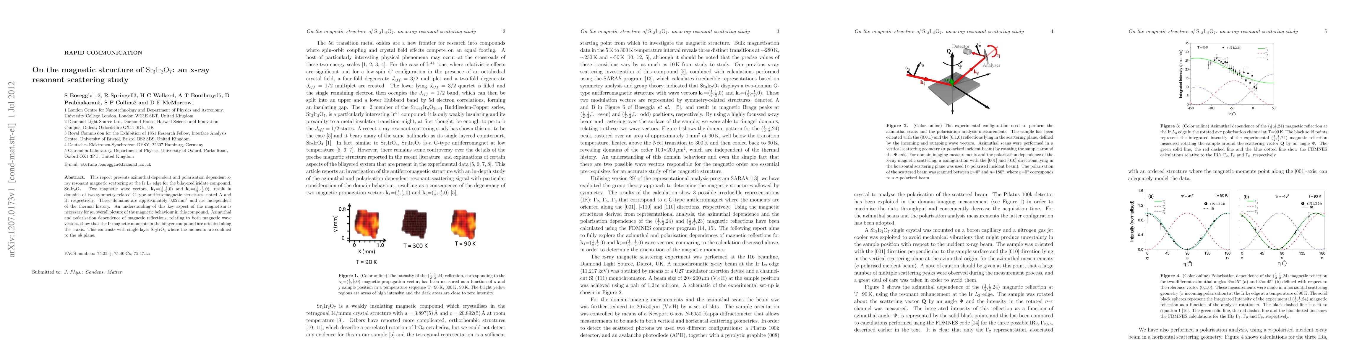This study uses x-ray resonant scattering to reveal two symmetry-related antiferromagnetic domains in Sr3Ir2O7, each with unique magnetic wave vectors. The Ir magnetic moments are found to be oriented along the c-axis, contrasting with similar single-layer compounds where moments are confined to the ab plane.