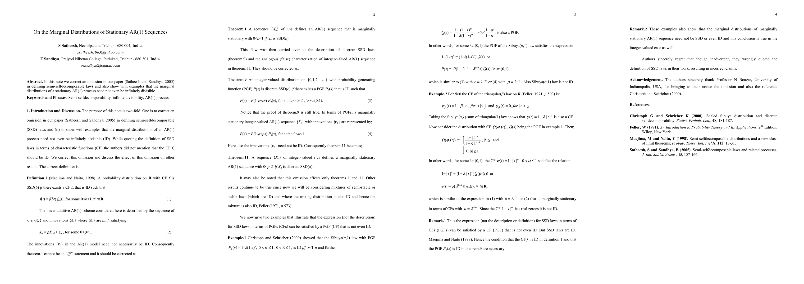 In this note we correct an omission in our paper (Satheesh and Sandhya, 2005) in defining semi-selfdecomposable laws and also show with examples that the marginal distributions of a stationary AR(1) process need not even be infinitely divisible.