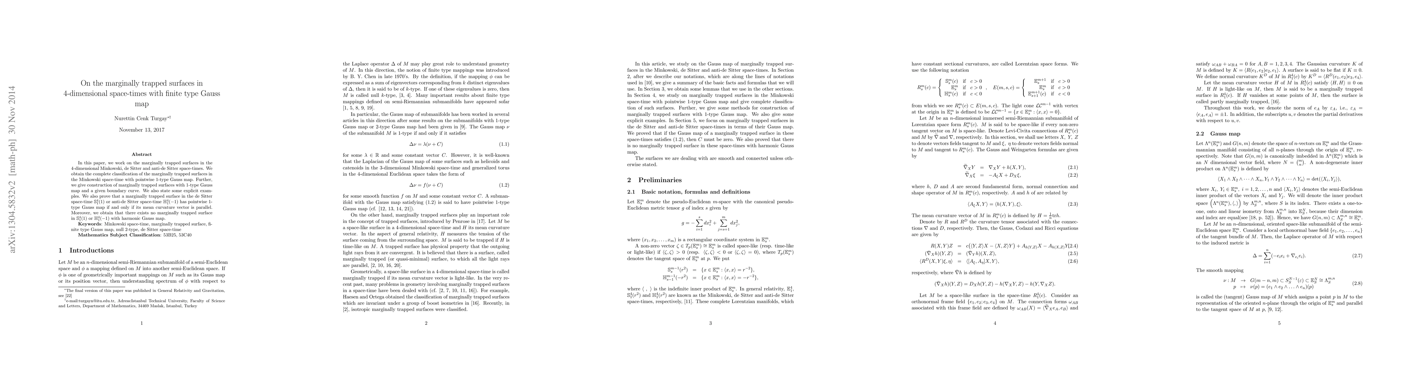 This paper classifies marginally trapped surfaces in Minkowski, de Sitter, and anti-de Sitter space-times, focusing on those with a pointwise 1-type Gauss map. It also constructs such surfaces with specified boundary conditions and proves specific geometric properties in de Sitter and anti-de Sitter spaces.