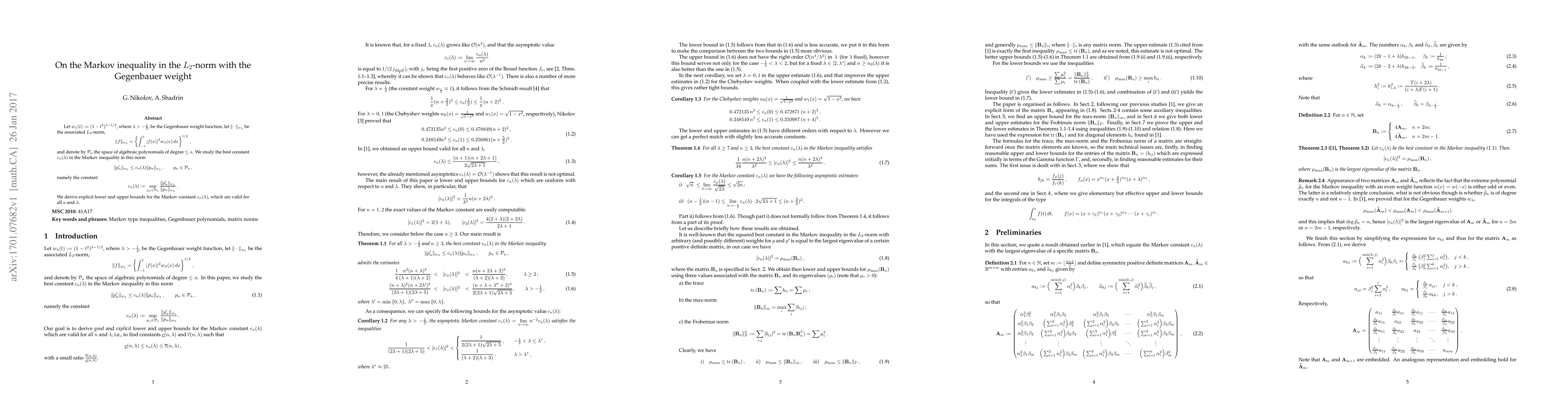 The paper studies the best constant $c_n( heta)$ in the Markov inequality for polynomials in the Gegenbauer weight norm, providing explicit lower and upper bounds for this constant that hold for all $n$ and $ heta$.