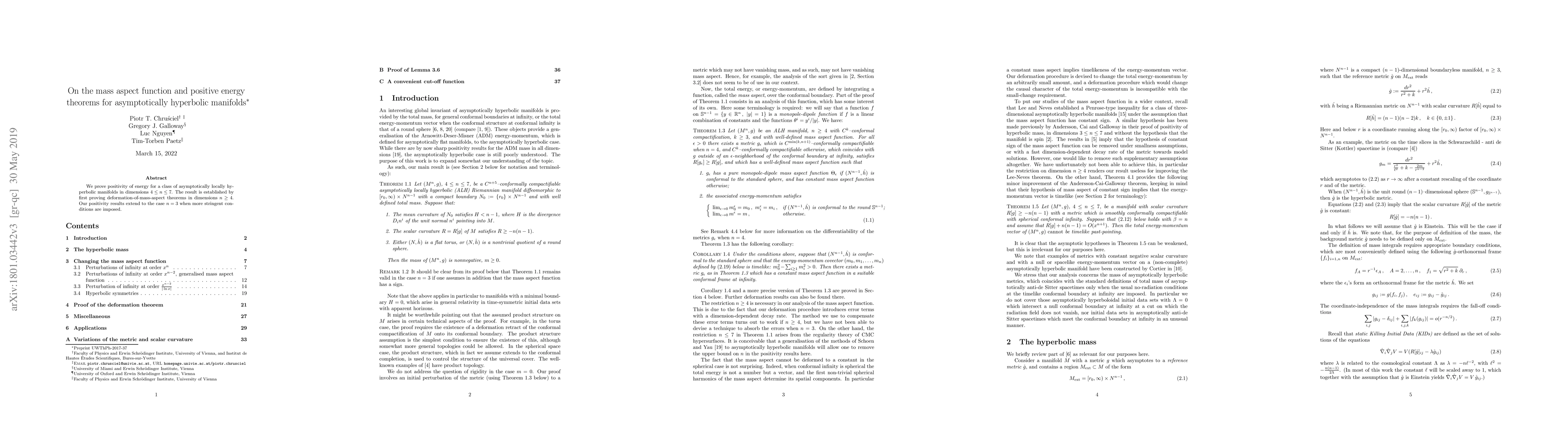 We prove positivity of energy for a class of asymptotically locally hyperbolic manifolds in dimensions $4\le n \le 7$. The result is established by first proving deformation-of-mass-aspect theorems in dimensions $n\ge 4$. Our positivity results extend to the case $n = 3$ when more stringent conditions are imposed.