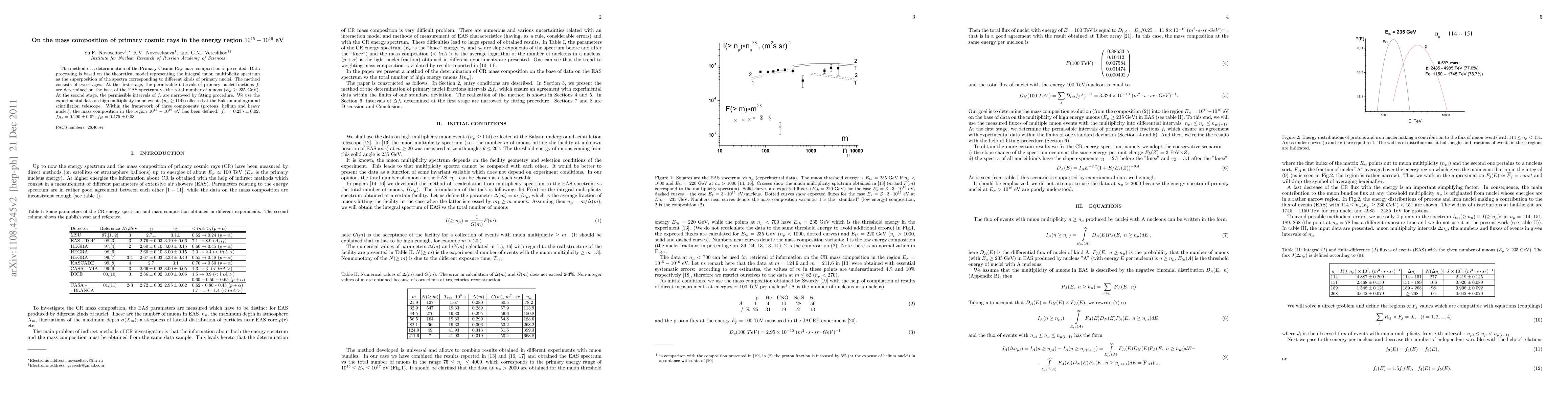 The method of a determination of the Primary Cosmic Ray mass composition is presented. Data processing is based on the theoretical model representing the integral muon multiplicity spectrum as the superposition of the spectra corresponding to different kinds of primary nuclei. The method consists of two stages. At the first stage, the permissible intervals of primary nuclei fractions f_i are determined on the base of the EAS spectrum vs the total number of muons (E_mu > 235 GeV). At the second stage, the permissible intervals of f_i are narrowed by fitting procedure. We use the experimental data on high multiplicity muon events (n_mu > 114) collected at the Baksan underground scintillation telescope. Within the framework of three components (protons, helium and heavy nuclei), the mass composition in the region 10^15-10^16 eV has been defined: f_p = 0.235 +- 0.02, f_He = 0.290 +- 0.02$, f_H = 0.475 +- 0.03.