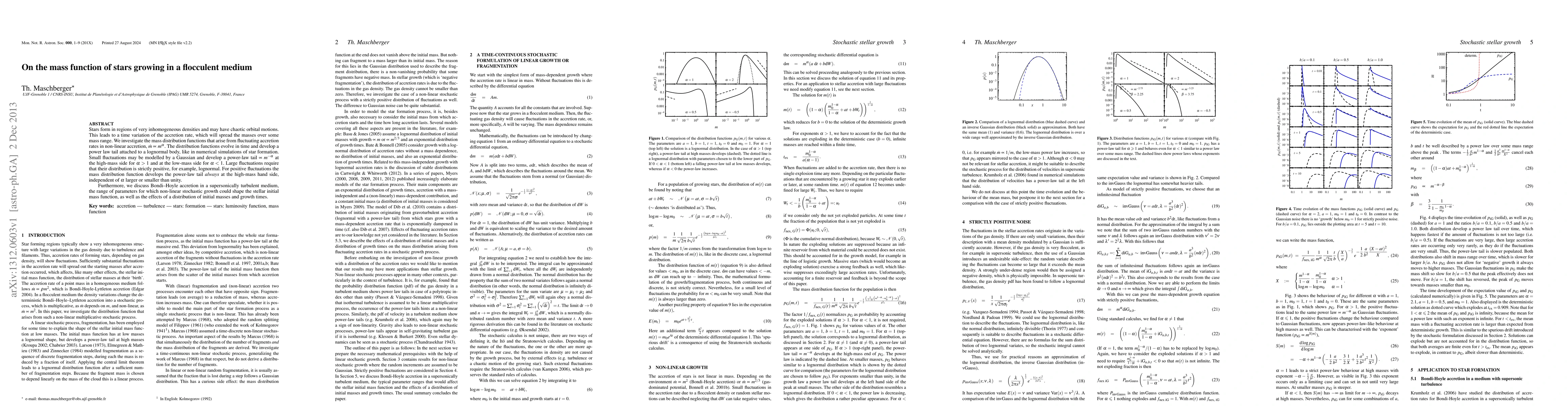 Stars form in regions of very inhomogeneous densities and may have chaotic orbital motions. This leads to a time variation of the accretion rate, which will spread the masses over some mass range. We investigate the mass distribution functions that arise from fluctuating accretion rates in non-linear accretion, $\dot{m} \propto m^{\alpha}$. The distribution functions evolve in time and develop a power law tail attached to a lognormal body, like in numerical simulations of star formation. Small fluctuations may be modelled by a Gaussian and develop a power-law tail $\propto m^{-\alpha}$ at the high-mass side for $\alpha > 1$ and at the low-mass side for $\alpha < 1$. Large fluctuations require that their distribution is strictly positive, for example, lognormal. For positive fluctuations the mass distribution function develops the power-law tail always at the high-mass hand side, independent of $\alpha$ larger or smaller than unity. Furthermore, we discuss Bondi-Hoyle accretion in a supersonically turbulent medium, the range of parameters for which non-linear stochastic growth could shape the stellar initial mass function, as well as the effects of a distribution of initial masses and growth times.