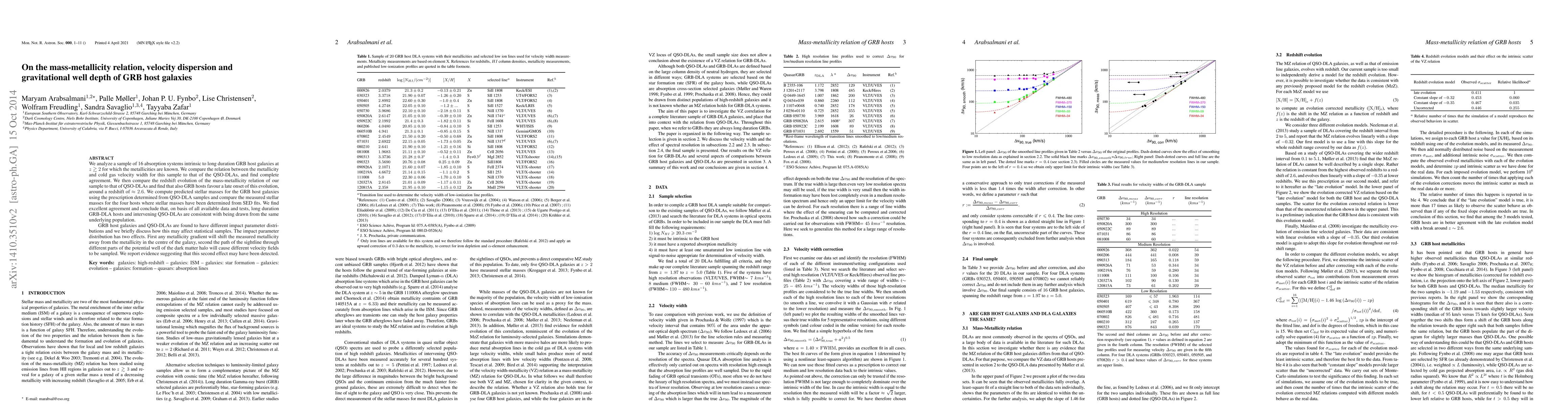 This paper investigates the mass-metallicity relation, velocity dispersion, and gravitational well depth of long-duration GRB host galaxies, finding they align closely with QSO-DLAs in terms of metallicity and gas velocity width. It concludes that GRB hosts and QSO-DLAs likely originate from the same population, despite differences in their impact parameter distributions affecting observed metallicities and velocity fields.