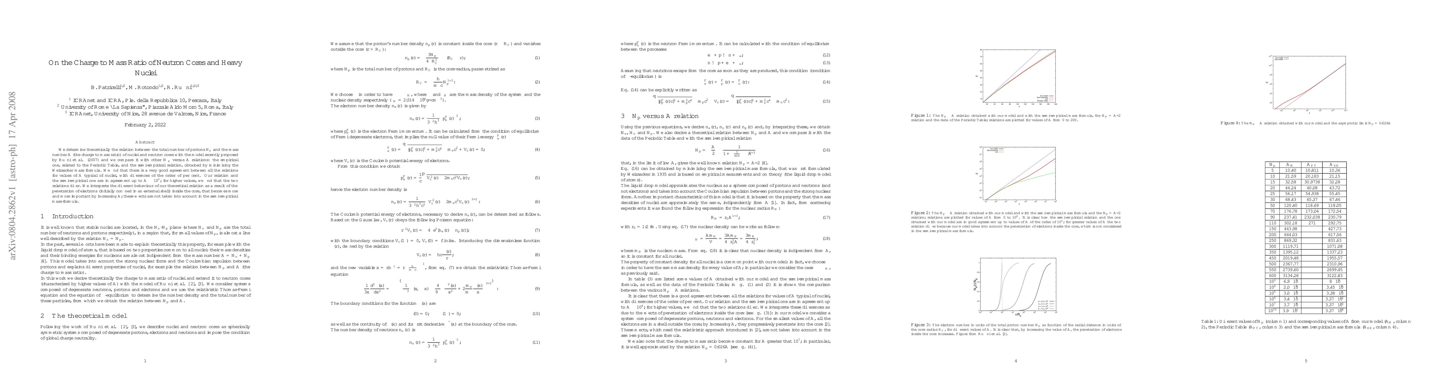 We determine theoretically the relation between the total number of protons $N_{p}$ and the mass number $A$ (the charge to mass ratio) of nuclei and neutron cores with the model recently proposed by Ruffini et al. (2007) and we compare it with other $N_p$ versus $A$ relations: the empirical one, related to the Periodic Table, and the semi-empirical relation, obtained by minimizing the Weizs\"{a}cker mass formula. We find that there is a very good agreement between all the relations for values of $A$ typical of nuclei, with differences of the order of per cent. Our relation and the semi-empirical one are in agreement up to $A\sim 10^4$; for higher values, we find that the two relations differ. We interprete the different behaviour of our theoretical relation as a result of the penetration of electrons (initially confined in an external shell) inside the core, that becomes more and more important by increasing $A$; these effects are not taken into account in the semi-empirical mass-formula.