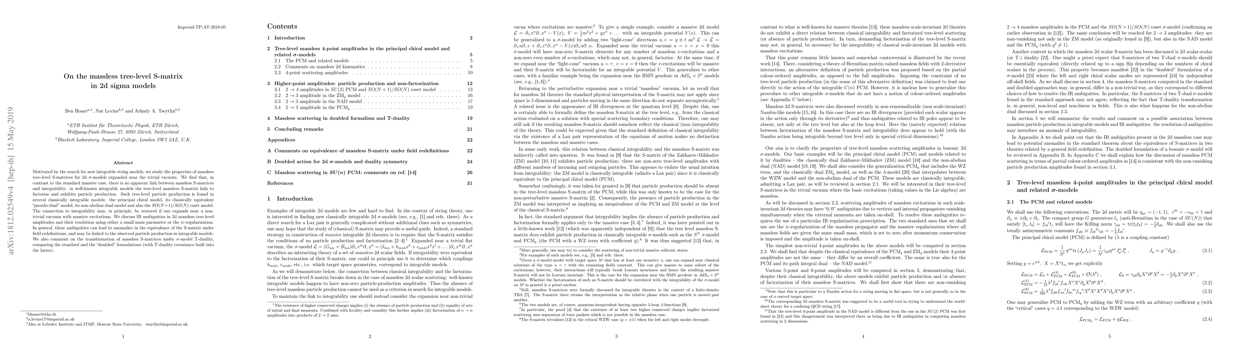 This paper explores massless tree-level S-matrices in 2d sigma models near the trivial vacuum, finding no clear link between these S-matrices and integrability despite their presence in classically integrable models. It discusses IR ambiguities and their resolution, and examines the transformation of these S-matrices under sigma model T-duality.