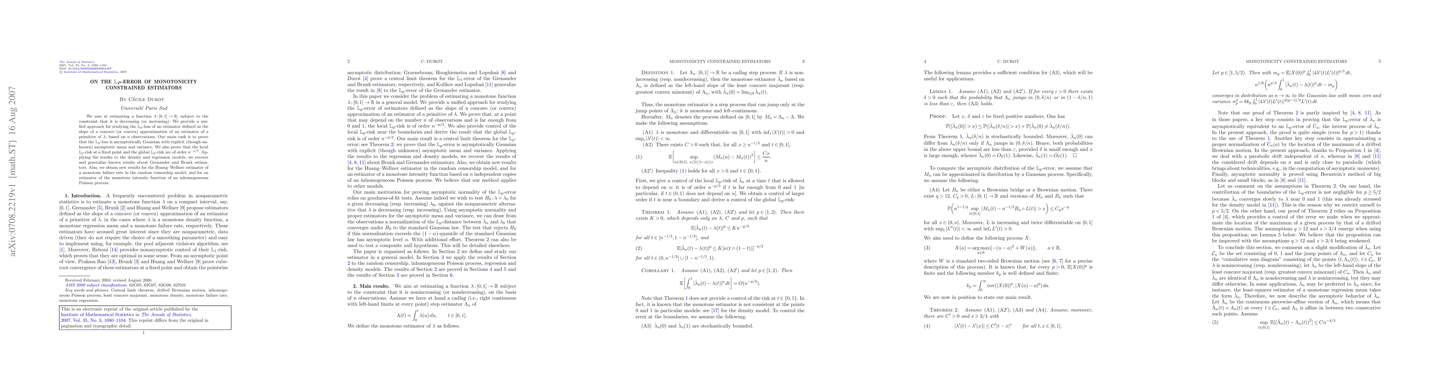 We aim at estimating a function $\lambda:[0,1]\to \mathbb {R}$, subject to the constraint that it is decreasing (or increasing). We provide a unified approach for studying the $\mathbb {L}_p$-loss of an estimator defined as the slope of a concave (or convex) approximation of an estimator of a primitive of $\lambda$, based on $n$ observations. Our main task is to prove that the $\mathbb {L}_p$-loss is asymptotically Gaussian with explicit (though unknown) asymptotic mean and variance. We also prove that the local $\mathbb {L}_p$-risk at a fixed point and the global $\mathbb {L}_p$-risk are of order $n^{-p/3}$. Applying the results to the density and regression models, we recover and generalize known results about Grenander and Brunk estimators. Also, we obtain new results for the Huang--Wellner estimator of a monotone failure rate in the random censorship model, and for an estimator of the monotone intensity function of an inhomogeneous Poisson process.