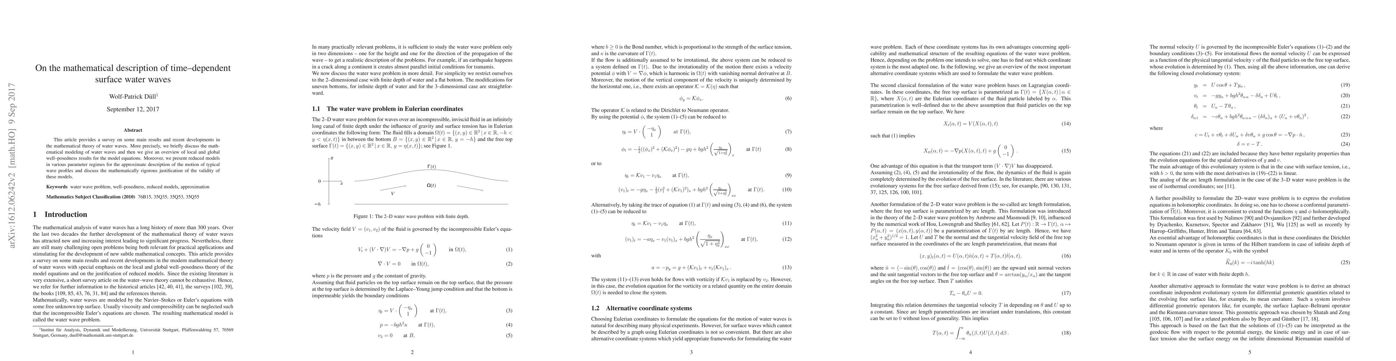This paper surveys recent developments in the mathematical modeling of water waves, focusing on local and global well-posedness results and reduced models for approximate wave profile description.