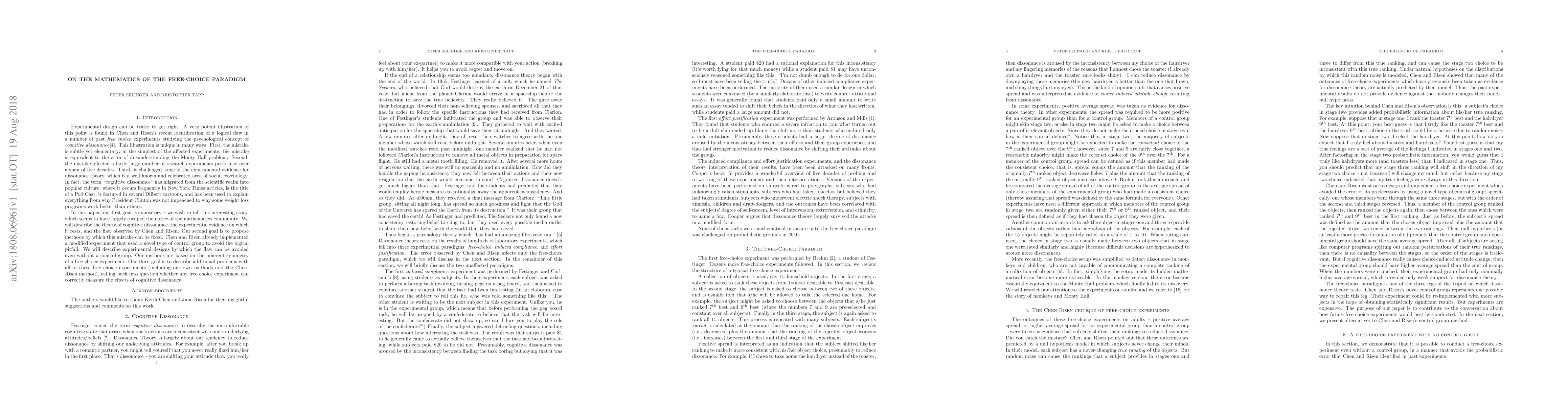 Chen and Risen pointed out a logical flaw affecting the conclusions of a number of past experiments that used the free-choice paradigm to measure choice-induced attitude change. They went on to design and implement a free-choice experiment that used a novel type of control group in order to avoid this logical pitfall. In this paper, we describe a method by which a free-choice experiment can be correctly conducted even without a control group.
