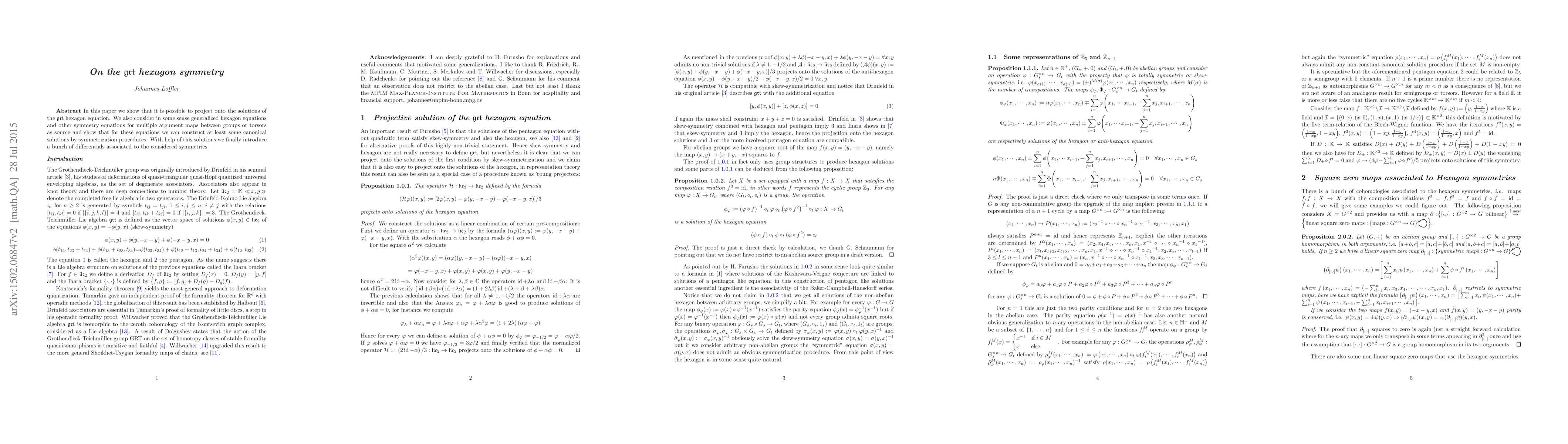 In this paper we show that it is possible to project onto the solutions of the $\mathfrak{grt}$ hexagon equation. We also consider in some sense generalized hexagon equations and other symmetry equations for multiple argument maps between groups or torsors as source and show that for these equations we can construct at least some canonical solutions by symmetrization procedures. With help of this solutions we finally introduce a bunch of differentials associated to the considered symmetries.