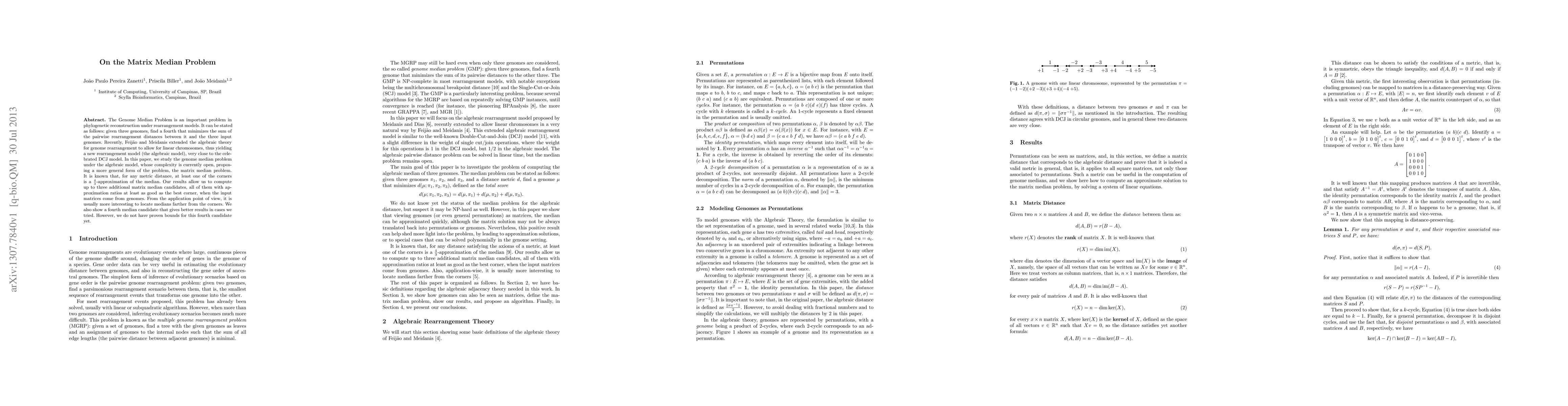 This paper explores the Genome Median Problem under the algebraic model, proposing a matrix median problem variant. It identifies up to three additional median candidates with at least 4/3-approximation ratios, and a fourth candidate that shows promising results though without proven bounds.