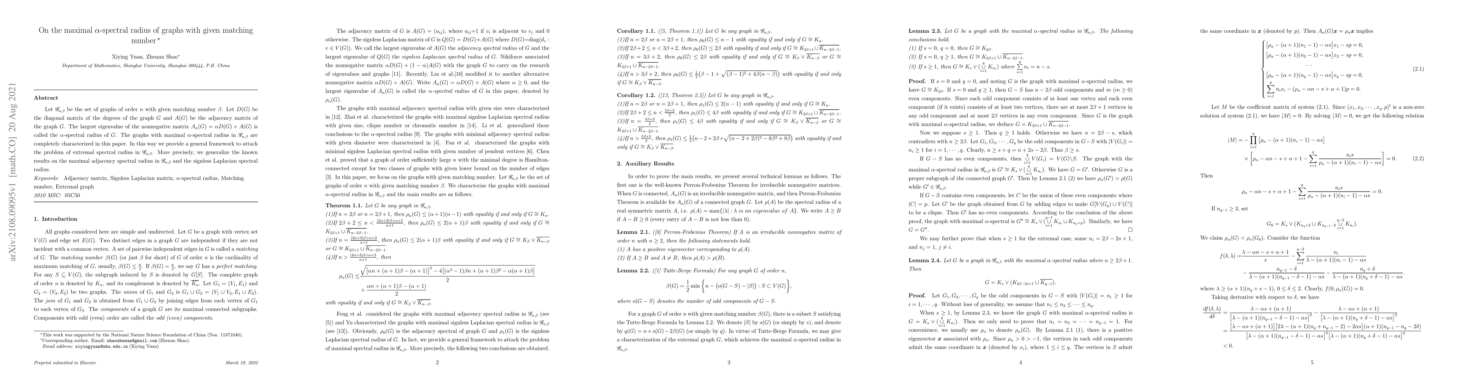 Let $\mathscr{G}_{n,\beta}$ be the set of graphs of order $n$ with given matching number $\beta$. Let $D(G)$ be the diagonal matrix of the degrees of the graph $G$ and $A(G)$ be the adjacency matrix of the graph $G$. The largest eigenvalue of the nonnegative matrix $A_{\alpha}(G)=\alpha D(G)+A(G)$ is called the $\alpha$-spectral radius of $G$. The graphs with maximal $\alpha$-spectral radius in $\mathscr{G}_{n,\beta}$ are completely characterized in this paper. In this way we provide a general framework to attack the problem of extremal spectral radius in $\mathscr{G}_{n,\beta}$. More precisely, we generalize the known results on the maximal adjacency spectral radius in $\mathscr{G}_{n,\beta}$ and the signless Laplacian spectral radius.
