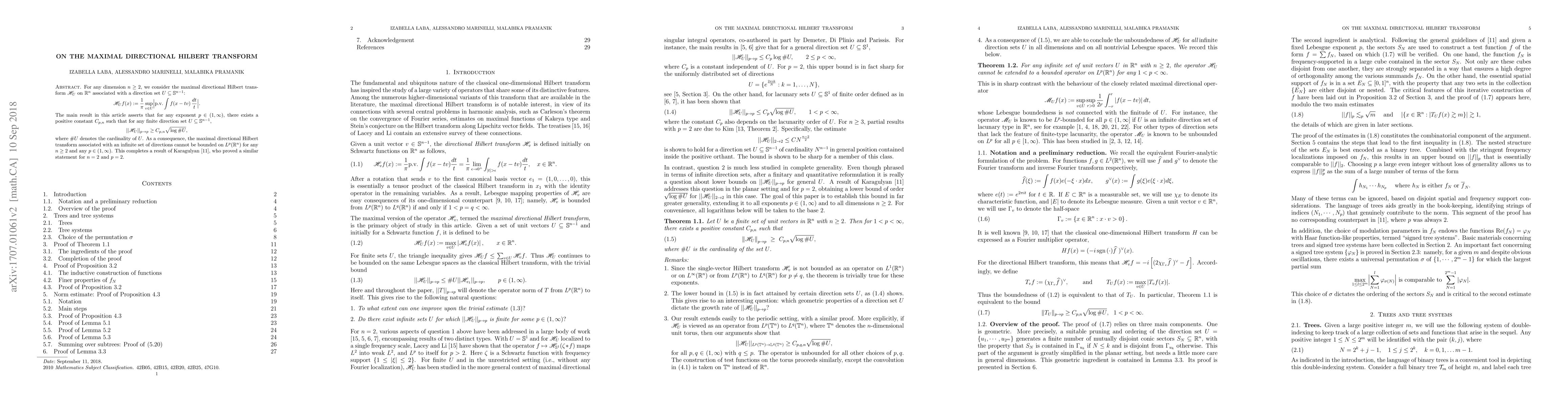 This paper investigates the maximal directional Hilbert transform $\mathscr{H}_U$ in $\mathbb{R}^n$ and proves that for any finite direction set $U$, its $L^p$ operator norm is bounded below by a constant proportional to $\sqrt{\log \#U}$. Consequently, the transform cannot be bounded on $L^p$ for any infinite direction set.