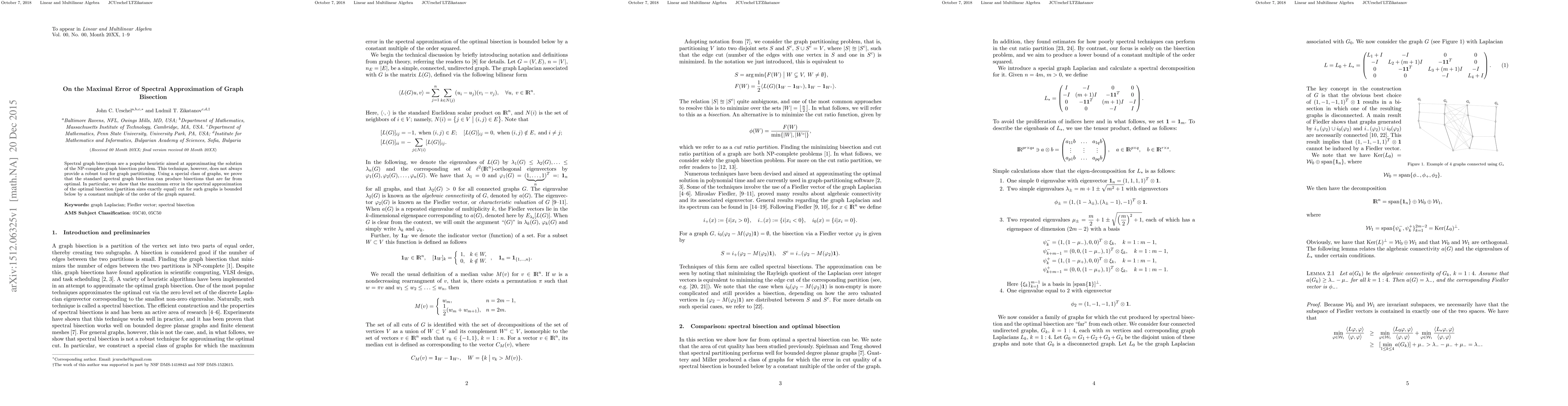 A novel spectral bisection method is proposed for graph partitioning, leveraging eigenvectors of the graph Laplacian to achieve efficient and accurate cuts.