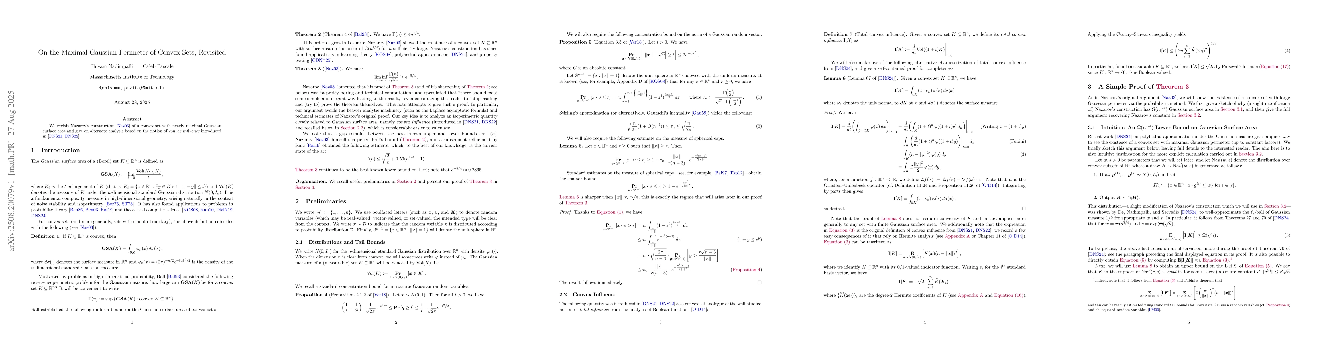 We revisit Nazarov's construction of a convex set with nearly maximal Gaussian surface area and give an alternate analysis based on the notion of convex influence.