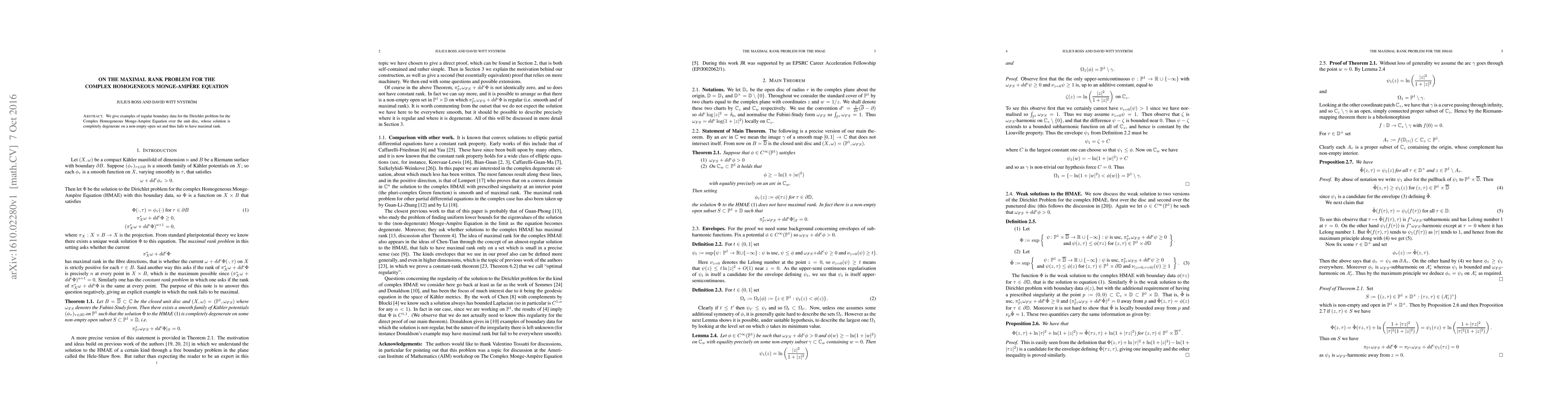 Summary: This paper presents examples of regular boundary data for the Dirichlet problem of the Complex Homogeneous Monge-Ampère Equation over the unit disc, demonstrating solutions that are completely degenerate on a non-empty open set, thereby failing to achieve maximal rank.