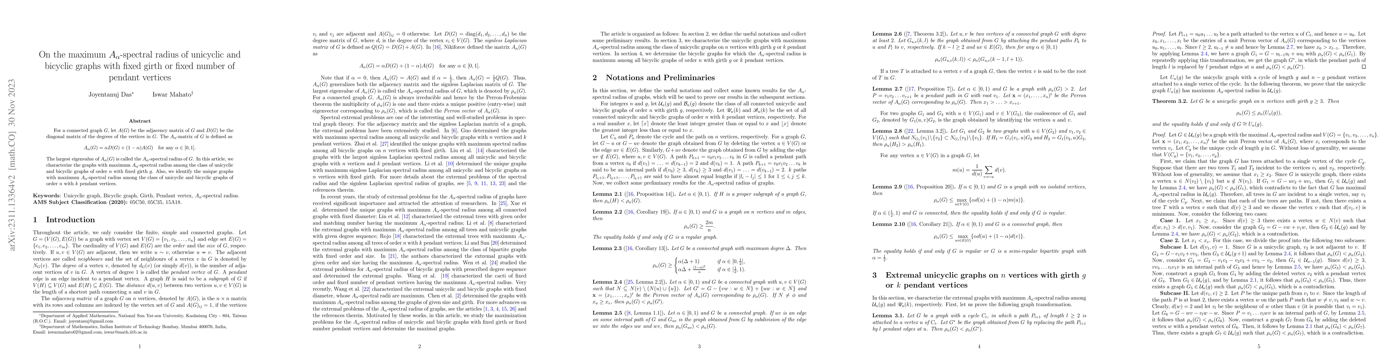 This paper investigates the $A_{\alpha}$-spectral radius of unicyclic and bicyclic graphs with fixed girth or a fixed number of pendant vertices, identifying the graphs that maximize this spectral radius within their respective classes. The study characterizes these graphs using the $A_{\alpha}$-matrix defined by a linear combination of the adjacency and degree matrices.