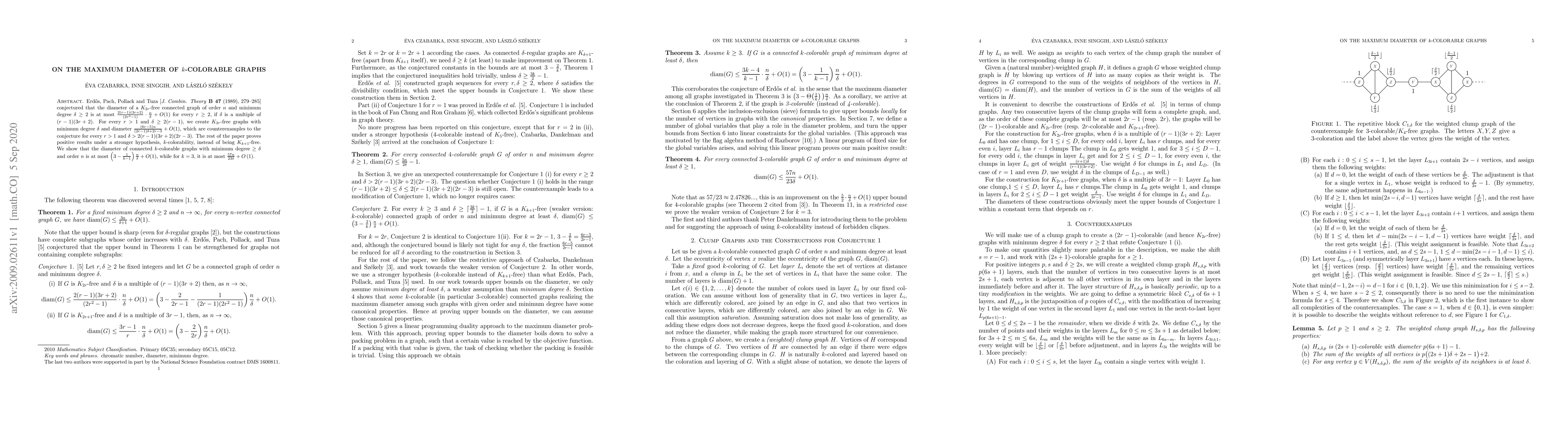 This paper refutes a conjecture on the maximum diameter of k-colorable graphs, providing counterexamples for certain values of r and delta, and proving bounds for connected k-colorable graphs with minimum degree }