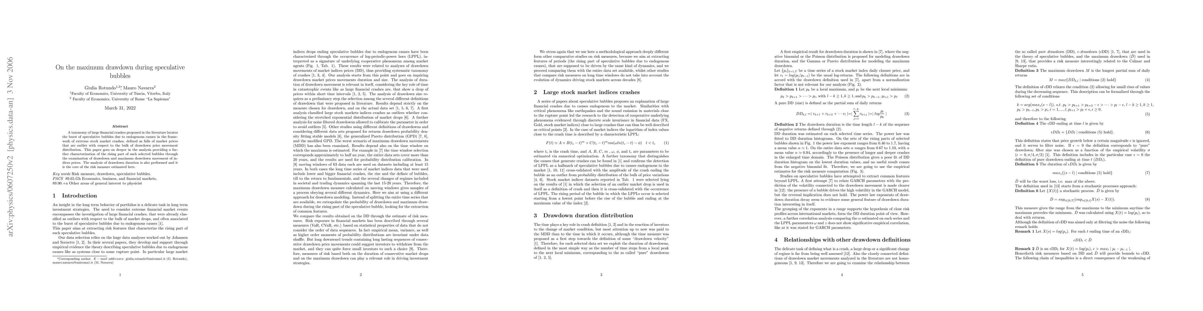 Researchers analyzed financial crashes to identify when speculative bubbles burst, focusing on maximum drawdown movement of indices prices. They found that the bursting point is often related to extreme price movements outside the bulk of normal decline distribution.