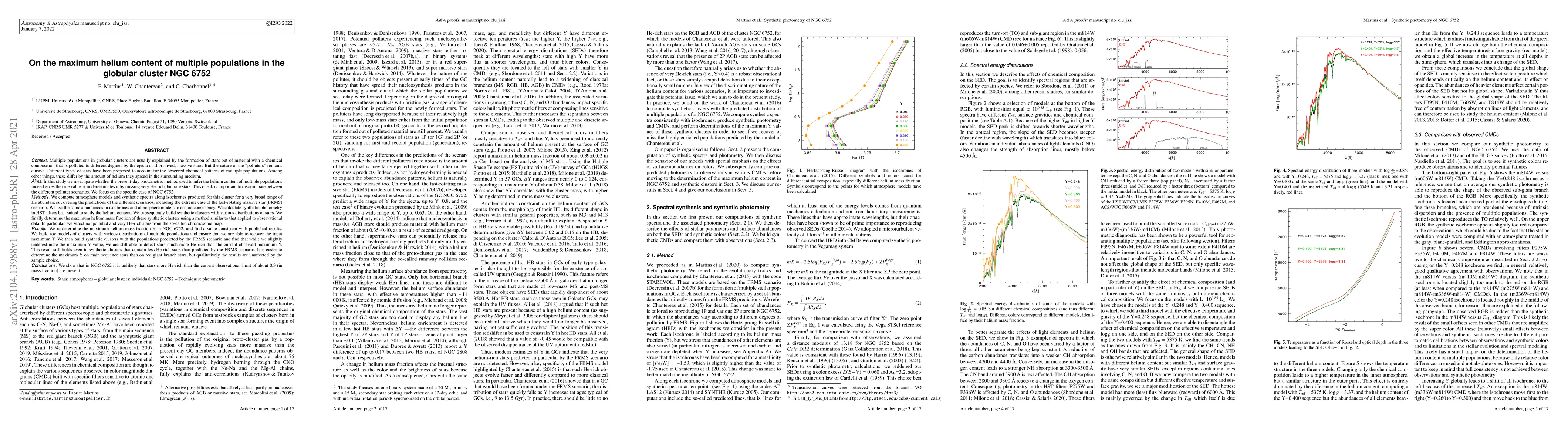 Multiple populations in globular clusters are usually explained by the formation of stars out of material with a chemical composition that is polluted to different degrees by the ejecta of short-lived, massive stars of various type. Among other things, these polluters differ by the amount of helium they spread in the surrounding medium. In this study we investigate whether the present-day photometric method used to infer the helium content of multiple populations indeed gives the true value or underestimates it by missing very He-rich, but rare stars. We focus on the specific case of NGC6752. We compute atmosphere models and synthetic spectra along isochrones produced for this cluster for a very broad range of He abundances covering the predictions of different pollution scenarios, including the extreme case of the fast-rotating massive star (FRMS) scenario. We calculate synthetic photometry in HST filters best suited to study the helium content. We subsequently build synthetic clusters with various distributions of stars. We finally determine the maximum helium mass fraction of these synthetic clusters using a method similar to that applied to observational data. We build toy models of clusters with various distributions of multiple populations and ensure that we are able to recover the input maximum Y. We then build synthetic clusters with the populations predicted by the FRMS scenario and find that while we slightly underestimate the maximum Y value, we are still able to detect stars much more He-rich than the current observed maximum Y. It is easier to determine the maximum Y on main sequence stars than on red giant branch stars, but qualitatively the results are unaffected by the sample choice. We show that in NGC6752 it is unlikely that stars more He-rich than the current observational limit of about 0.3 are present.