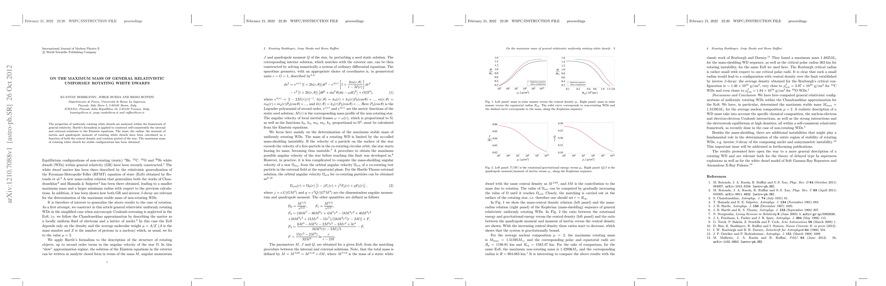 Researchers used general relativity to analyze rotating white dwarfs, finding a maximum mass for stable configurations based on central density and rotation period.