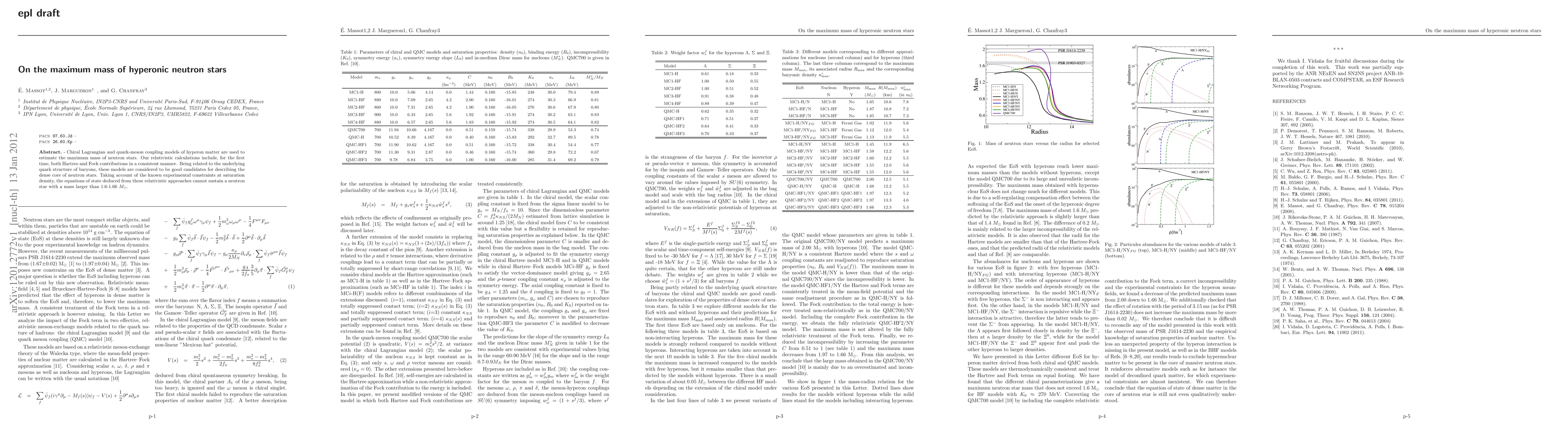 This study uses chiral Lagrangian and quark-meson coupling models to estimate the maximum mass of hyperonic neutron stars, incorporating both Hartree and Fock contributions for the first time. The findings suggest that neutron stars cannot exceed a mass of 1.6-1.66 $M_\odot$ based on relativistic calculations and known experimental constraints.