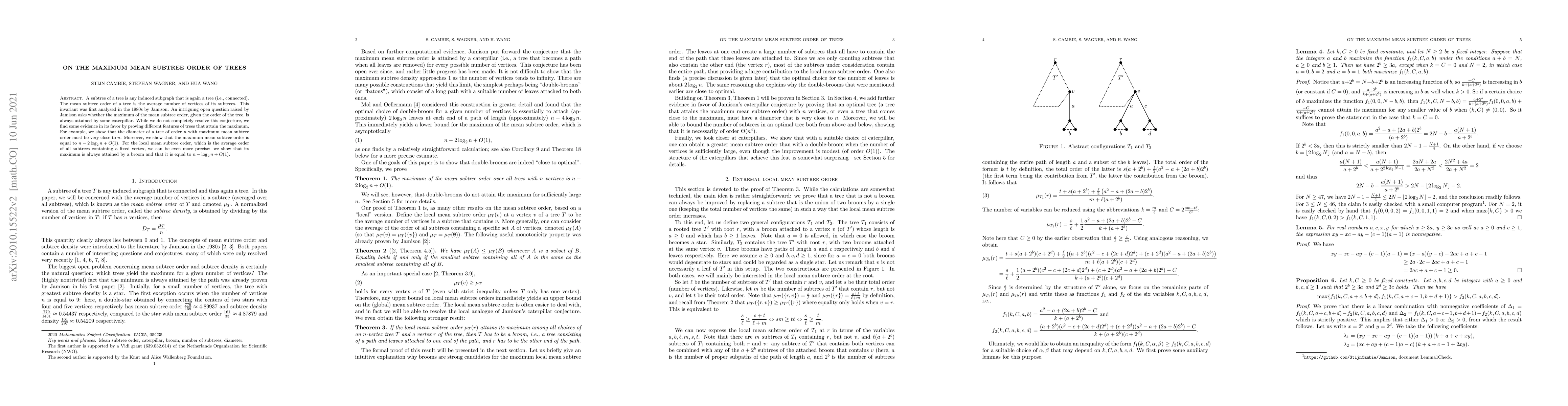 This paper investigates the maximum mean subtree order in trees, proving that trees with maximum mean subtree order tend to have diameters close to their order and that the global maximum is $n - 2\log_2 n + O(1)$. It also finds that the local maximum mean subtree order is achieved by brooms and equals $n - \log_2 n + O(1)$.