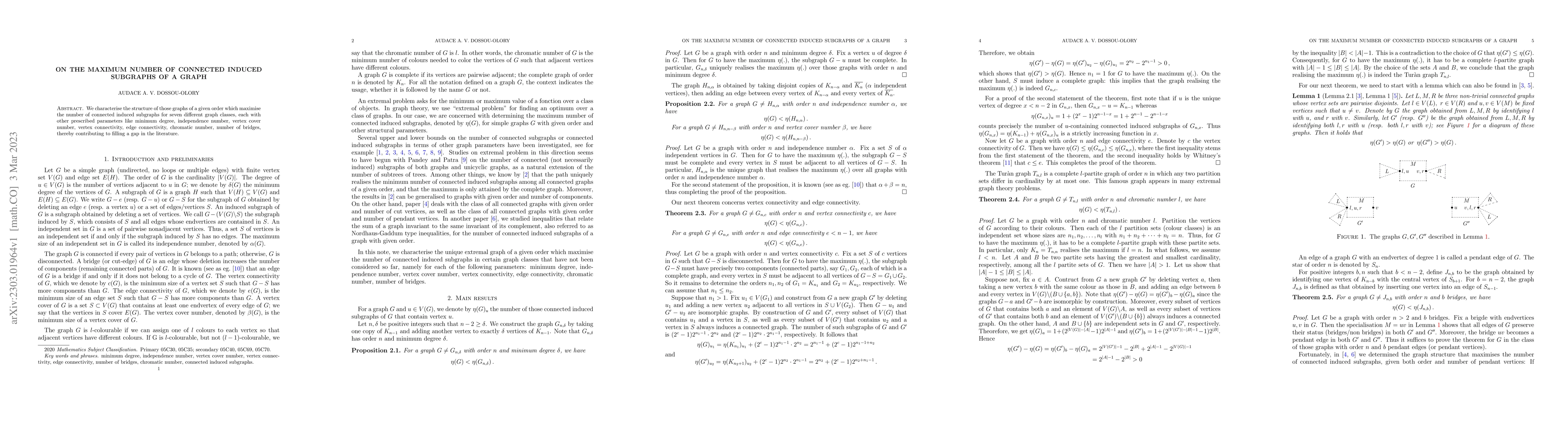 This study identifies the optimal structure of graphs within seven different classes that maximize the number of connected induced subgraphs, considering various parameters like degree and connectivity, thus addressing a gap in existing research.