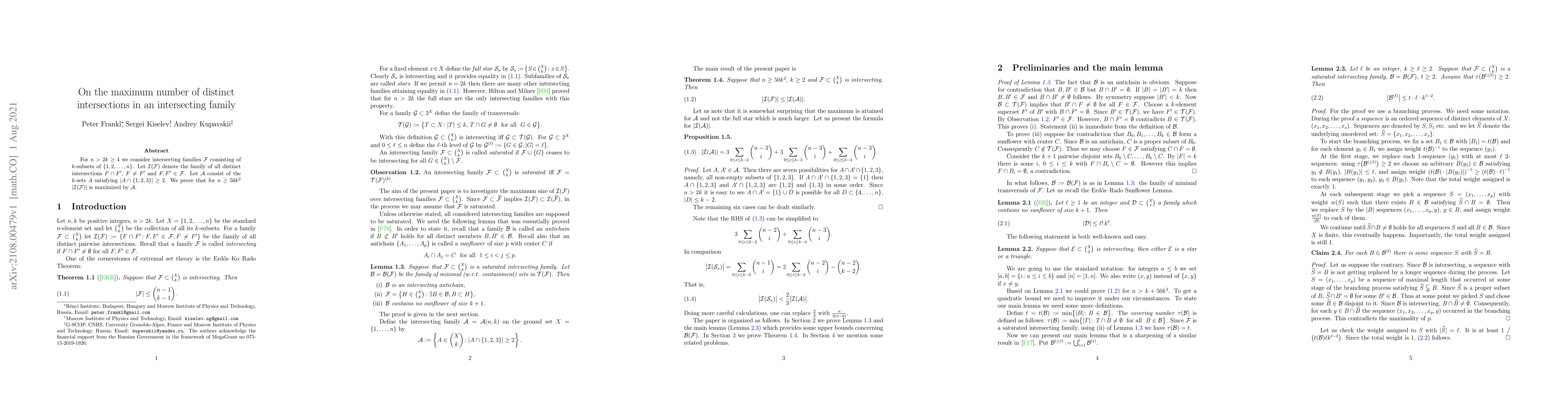 Peter Frankl, Andrey Kupavskii, Sergei Kiselev