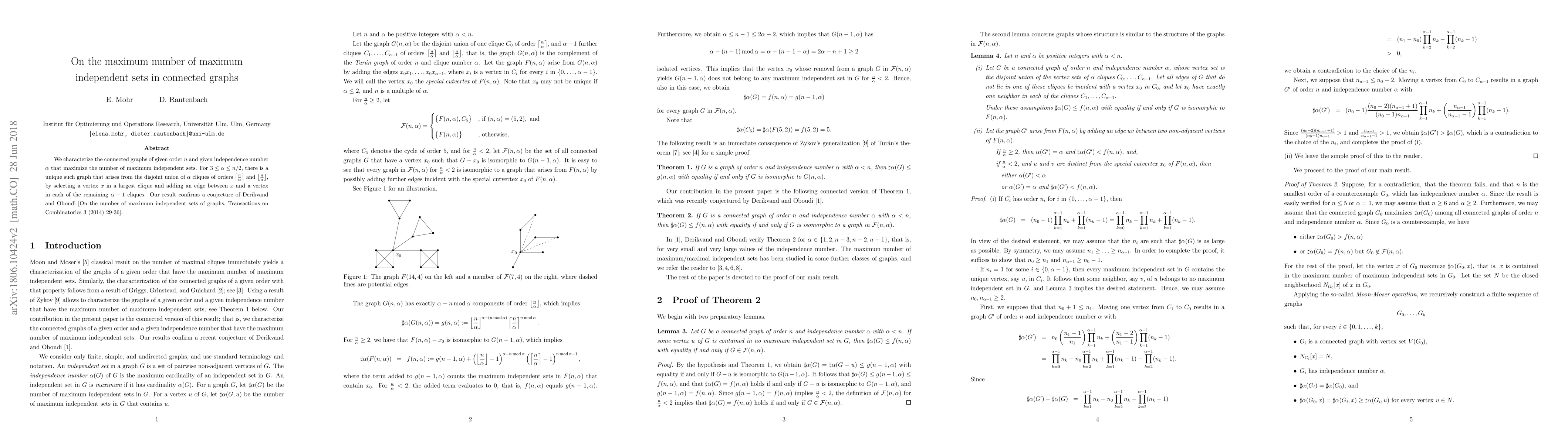 This paper identifies the connected graphs that maximize the number of maximum independent sets for a given order and independence number. It confirms a conjecture by showing that such graphs are uniquely formed from a specific construction involving disjoint unions of cliques.