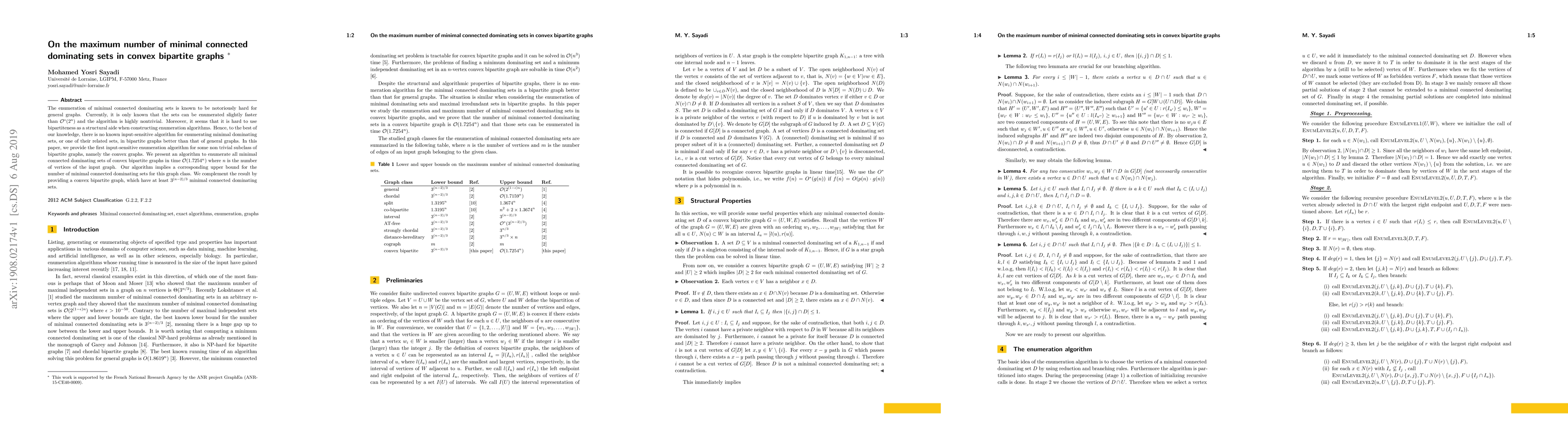 This paper presents the first input-sensitive algorithm for enumerating minimal connected dominating sets in convex bipartite graphs, achieving a time complexity of $\mathcal{O}(1.7254^{n})$, along with an upper bound for their number. It demonstrates that convex bipartite graphs can benefit from their structure in enumeration algorithms, unlike general bipartite graphs.
