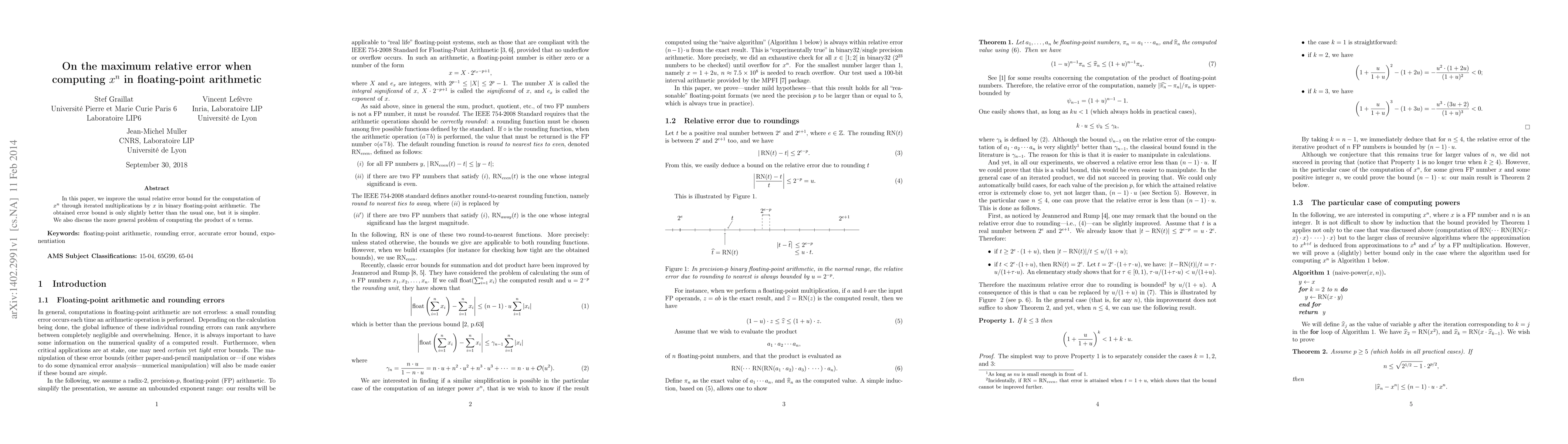 This paper refines the relative error bound for computing x^n via repeated multiplications in binary floating-point arithmetic, achieving a slightly better but simpler bound. It also extends the discussion to the product of n terms.