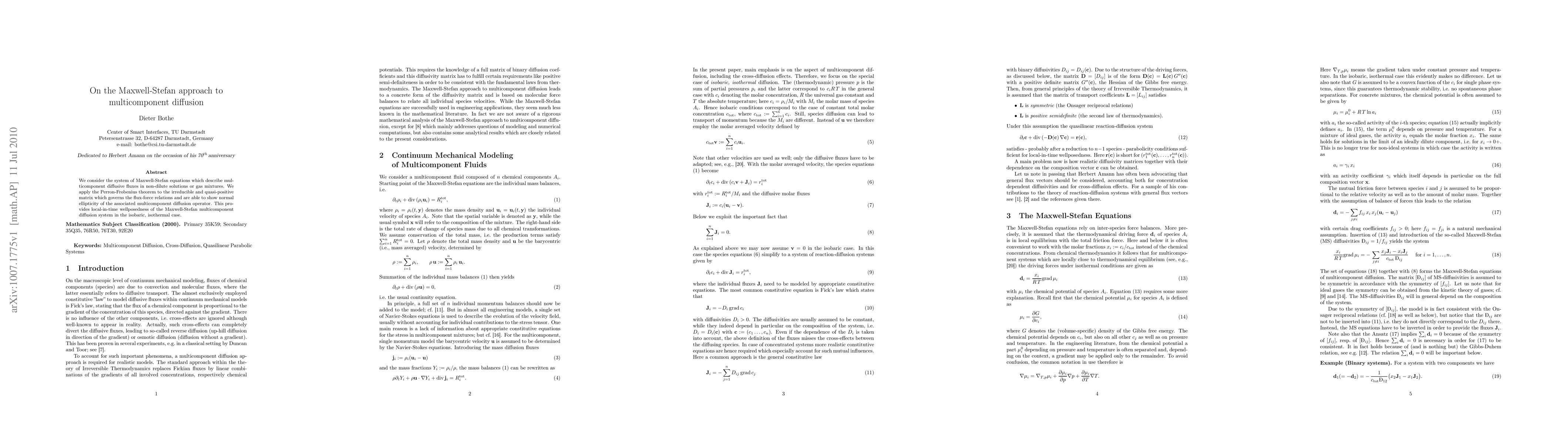 The paper demonstrates local-in-time wellposedness of the Maxwell-Stefan equations for multicomponent diffusion using the Perron-Frobenius theorem and spectral analysis of the diffusion matrix.
