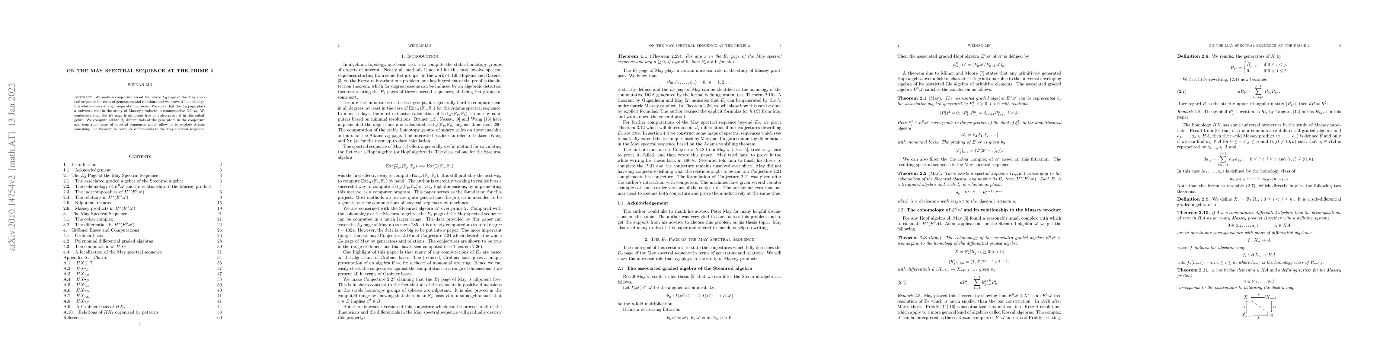 The paper proposes a conjecture regarding the $E_2$ page of the May spectral sequence in terms of generators and relations, proving it within a significant dimensional range. It further conjectures that the $E_2$ page is nilpotent free and explores its role in studying Massey products in commutative DGAs.