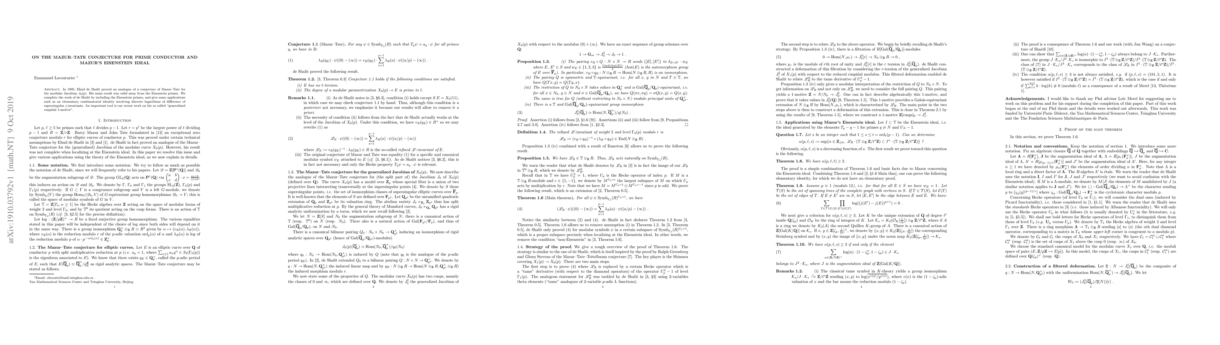 Summary: This paper completes Ehud de Shalit's 1995 proof on the Mazur--Tate conjecture for modular Jacobians, extending it to include Eisenstein primes, and provides a combinatorial identity involving discrete logarithms, utilizing the concept of generalized cuspidal 1-motives.