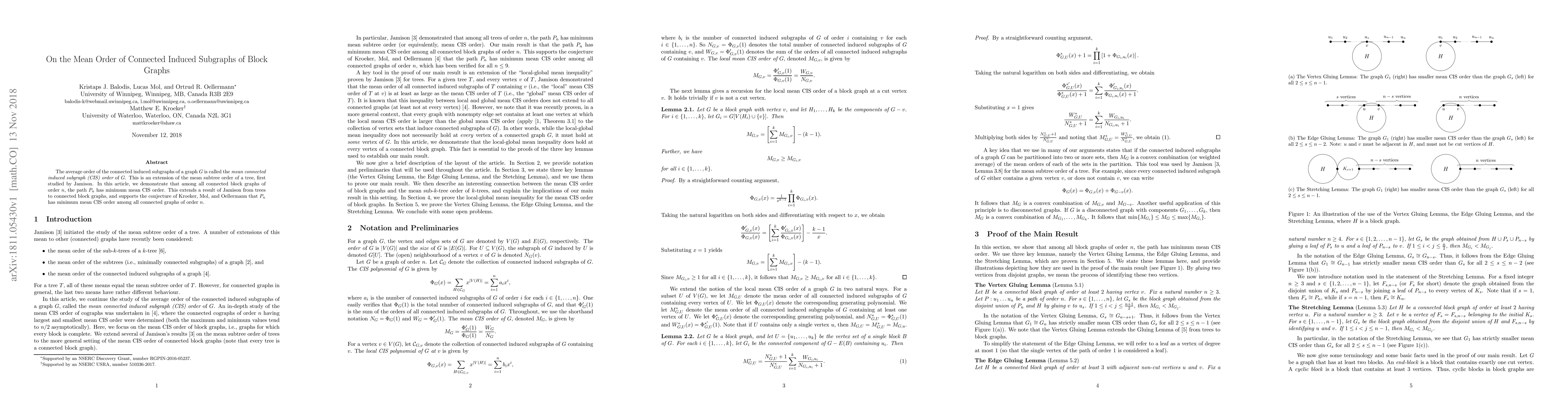 The paper introduces and proves theorems regarding the mean connected induced subgraph order of block graphs, extending previous results on trees.
