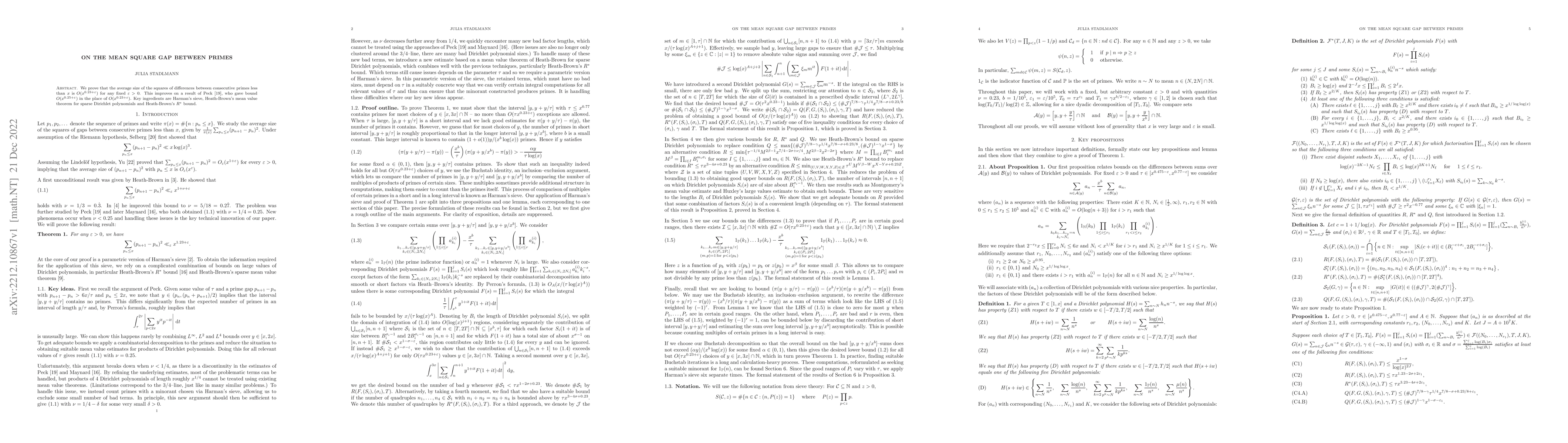 We prove that the average size of the squares of differences between consecutive primes less than $x$ is $O(x^{0.23+\varepsilon})$ for any fixed $\varepsilon>0$. This improves on a result of Peck, who gave bound $O(x^{0.25+\varepsilon})$ in the place of $O(x^{0.23+\varepsilon})$. Key ingredients are Harman's sieve, Heath-Brown's mean value theorem for sparse Dirichlet polynomials and Heath-Brown's $R^*$ bound.