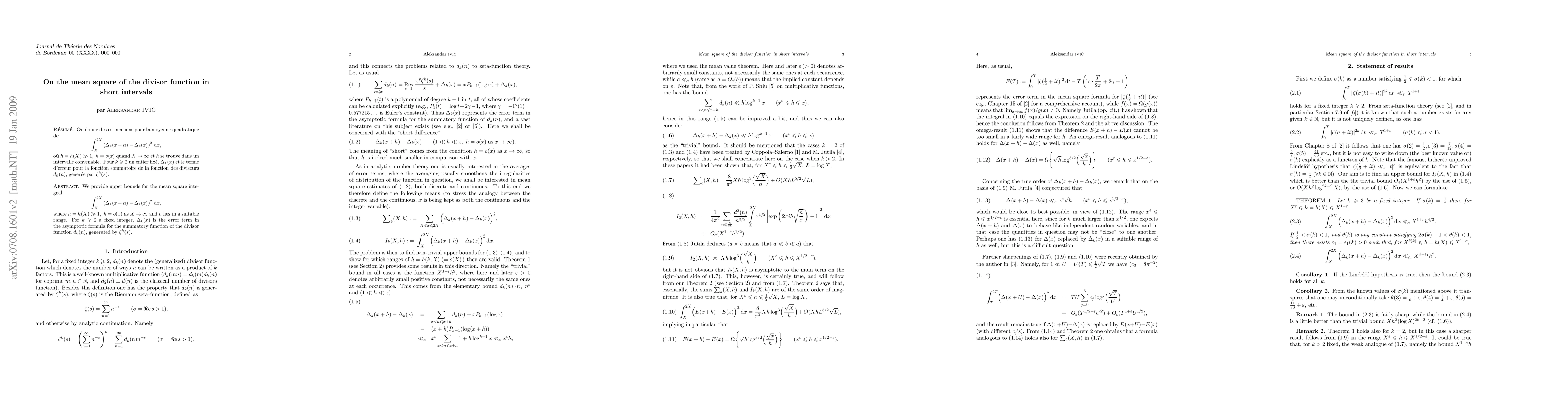 We provide upper bounds for the mean square integral $$ \int_X^{2X}(\Delta_k(x+h) - \Delta_k(x))^2 dx \qquad(h = h(X)\gg1, h = o(x) {\roman{as}} X\to\infty) $$ where $h$ lies in a suitable range. For $k\ge2$ a fixed integer, $\Delta_k(x)$ is the error term in the asymptotic formula for the summatory function of the divisor function $d_k(n)$, generated by $\zeta^k(s)$.