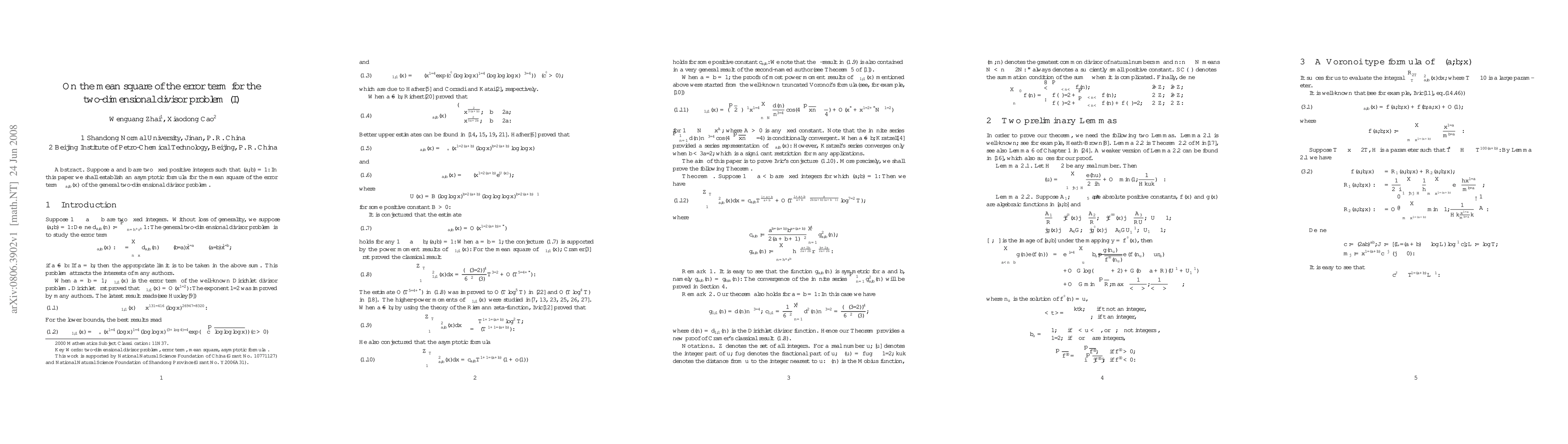 Suppose $a$ and $b$ are two fixed positive integers such that $(a,b)=1.$ In this paper we shall establish an asymptotic formula for the mean square of the error term $\Delta_{a,b}(x)$ of the general two-dimensional divisor problem.