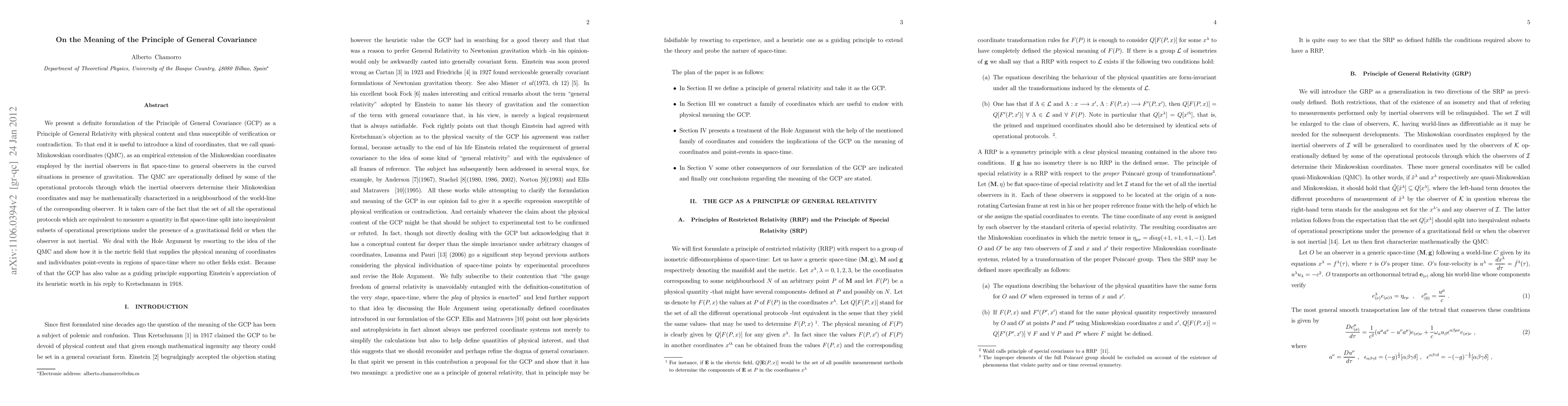 Researchers reformulate the Principle of General Covariance as a testable principle of general relativity, using quasi-Minkowskian coordinates to provide physical meaning to coordinates in curved space-time.