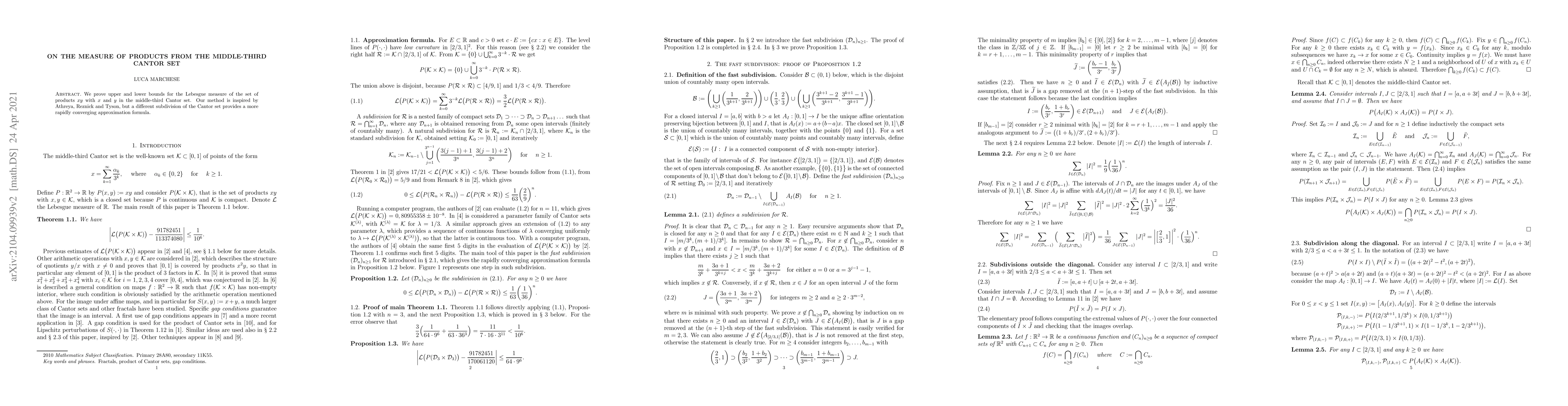 This paper establishes upper and lower bounds for the Lebesgue measure of the set of products $xy$ where $x$ and $y$ are elements of the middle-third Cantor set, utilizing a novel subdivision method that converges faster than previous approaches inspired by Athreya, Reznick, and Tyson.