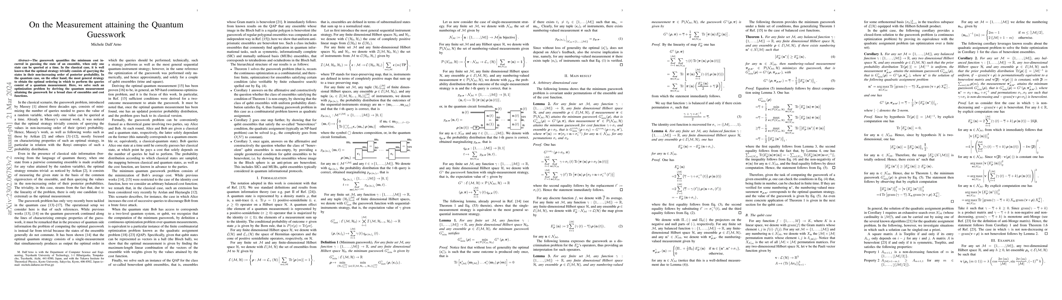The guesswork quantifies the minimum cost incurred in guessing the state of an ensemble, when only one state can be queried at a time. In the classical case, it is well known that the optimal strategy trivially consists of querying the states in their non-increasing order of posterior probability. In the quantum case, on the other hand, the most general strategy to obtain the optimal ordering in which to perform the queries consist of a quantum measurement. Here, we solve such an optimization problem by deriving the quantum measurement attaining the guesswork for a broad class of ensembles and cost functions.