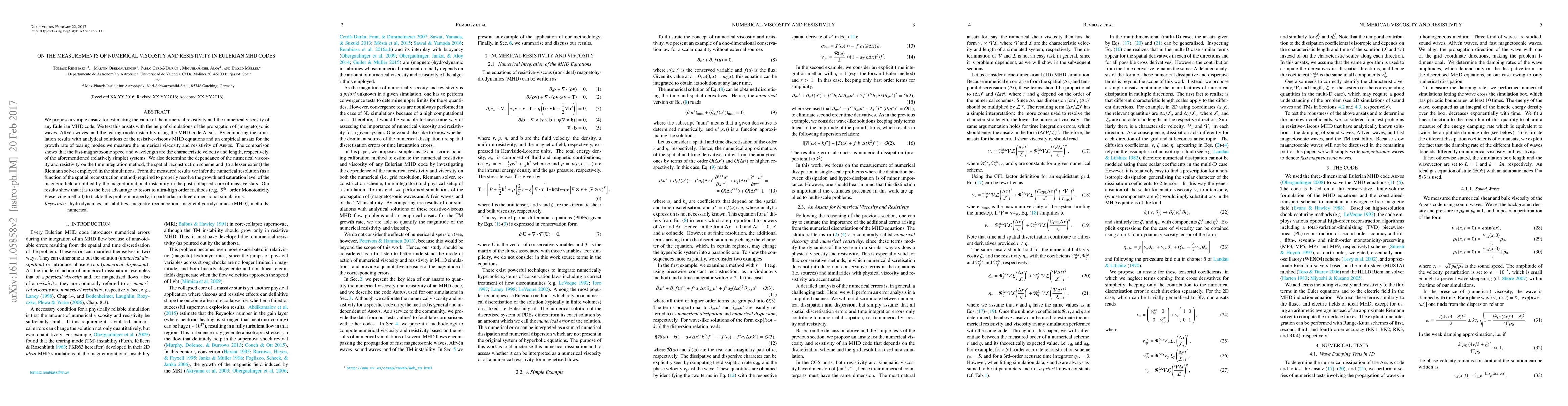 We propose a simple ansatz for estimating the value of the numerical resistivity and the numerical viscosity of any Eulerian MHD code. We test this ansatz with the help of simulations of the propagation of (magneto)sonic waves, Alfven waves, and the tearing mode instability using the MHD code Aenus. By comparing the simu- lation results with analytical solutions of the resistive-viscous MHD equations and an empirical ansatz for the growth rate of tearing modes we measure the numerical viscosity and resistivity of Aenus. The comparison shows that the fast-magnetosonic speed and wavelength are the characteristic velocity and length, respectively, of the aforementioned (relatively simple) systems. We also determine the dependance of the numerical viscosity and resistivity on the time integration method, the spatial reconstruction scheme and (to a lesser extent) the Riemann solver employed in the simulations. From the measured results we infer the numerical resolution (as a function of the spatial reconstruction method) required to properly resolve the growth and saturation level of the magnetic field amplified by the magnetorotational instability in the post-collapsed core of massive stars. Our results show that it is to the best advantage to resort to ultra-high order methods (e.g., 9th-order Monotonicity Preserving method) to tackle this problem properly, in particular in three dimensional simulations.