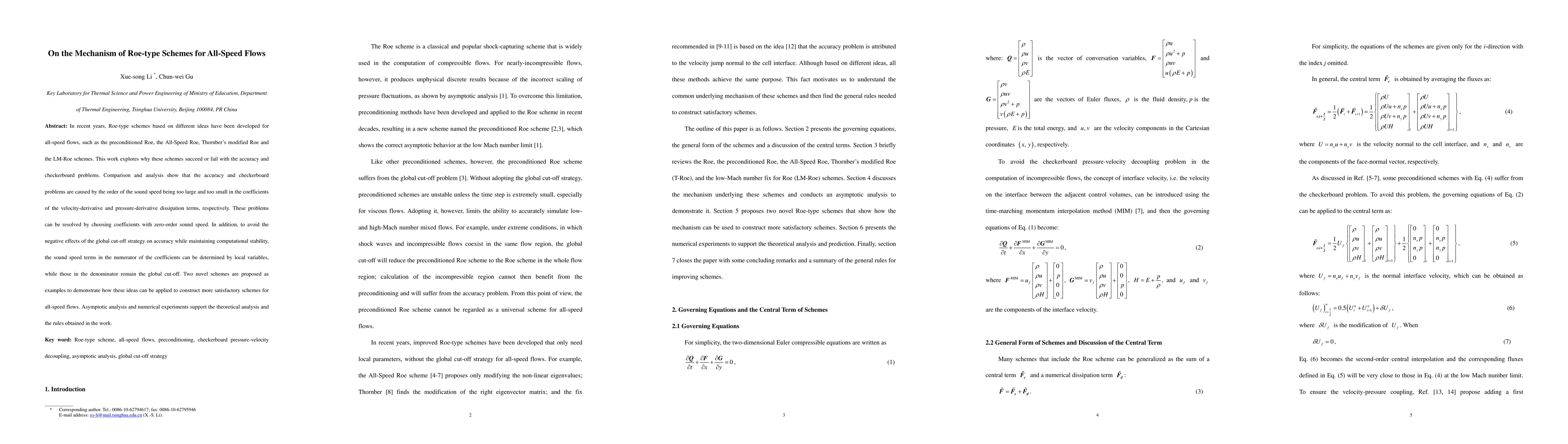 New schemes for simulating all-speed flows have been developed to address accuracy and checkerboard issues, which can be resolved by adjusting coefficients with zero-order sound speed.