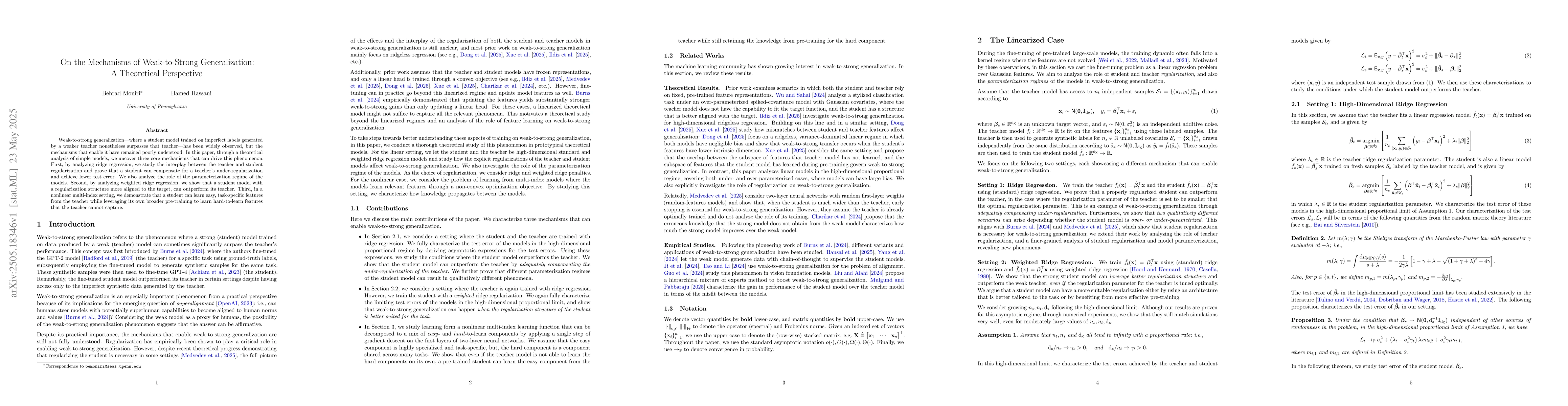 The paper presents a theoretical framework elucidating three mechanisms that enable weak-to-strong generalization in student models trained on imperfect teacher labels.