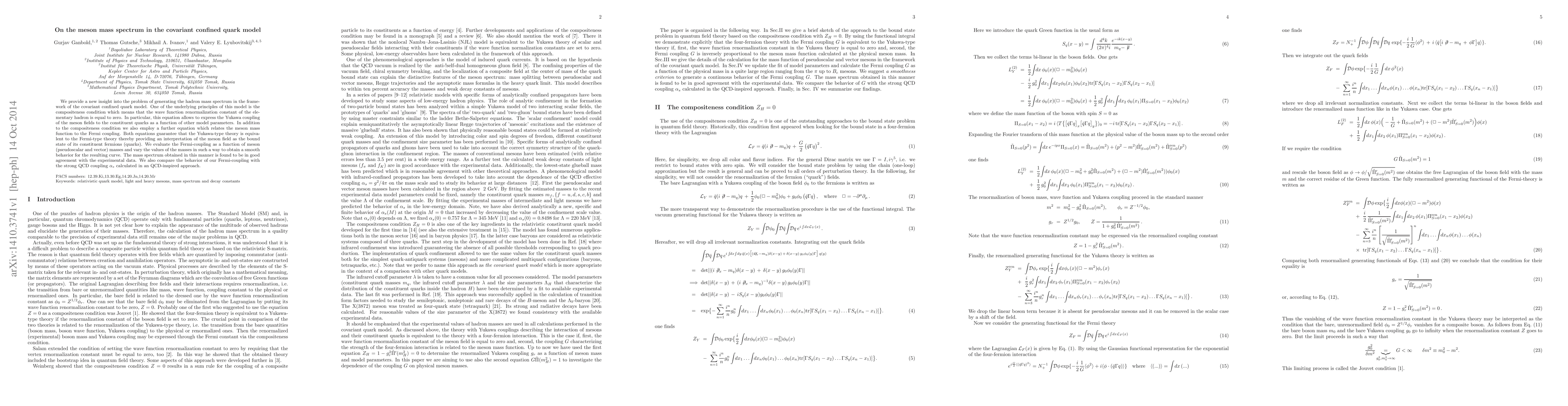 We provide a new insight into the problem of generating the hadron mass spectrum in the framework of the covariant confined quark model. One of the underlying principles of this model is the compositeness condition which means that the wave function renormalization constant of the elementary hadron is equal to zero. In particular, this equation allows to express the Yukawa coupling of the meson fields to the constituent quarks as a function of other model parameters. In addition to the compositeness condition we also employ a further equation which relates the meson mass function to the Fermi coupling. Both equations guarantee that the Yukawa-type theory is equivalent to the Fermi-type theory thereby providing an interpretation of the meson field as the bound state of its constituent fermions (quarks). We evaluate the Fermi-coupling as a function of meson (pseudoscalar and vector) masses and vary the values of the masses in such a way to obtain a smooth behavior for the resulting curve. The mass spectrum obtained in this manner is found to be in good agreement with the experimental data. We also compare the behavior of our Fermi-coupling with the strong QCD coupling alpha_s calculated in an QCD-inspired approach.