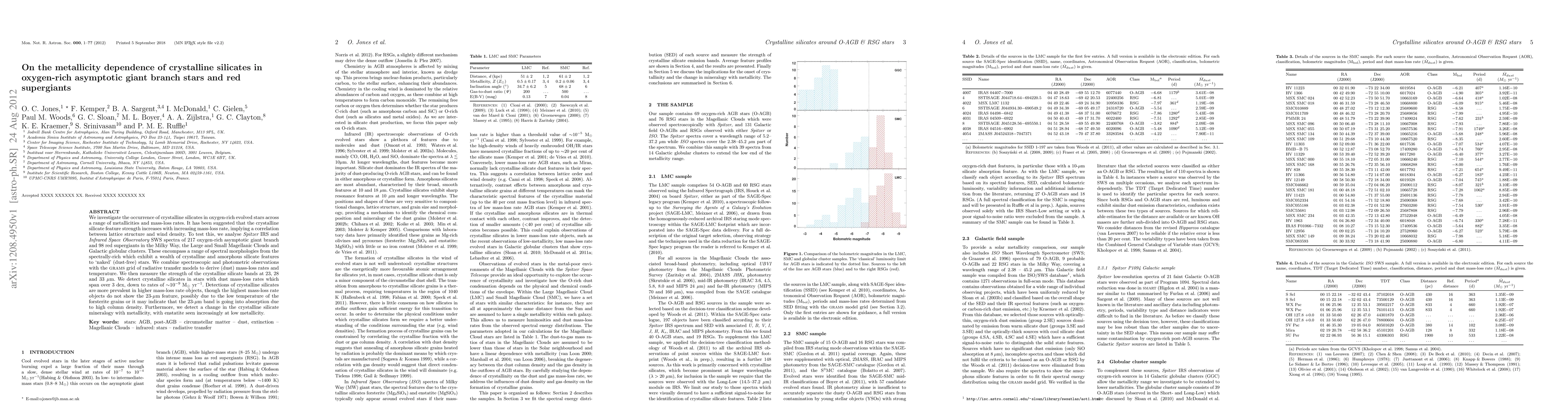 This study examines the presence of crystalline silicates in oxygen-rich evolved stars across various metallicities and mass-loss rates, finding that higher mass-loss rates correlate with stronger silicate features. The research reveals a shift in silicate mineralogy with lower metallicity favoring enstatite, suggesting complex dependencies between stellar evolution, dust formation, and chemical composition.