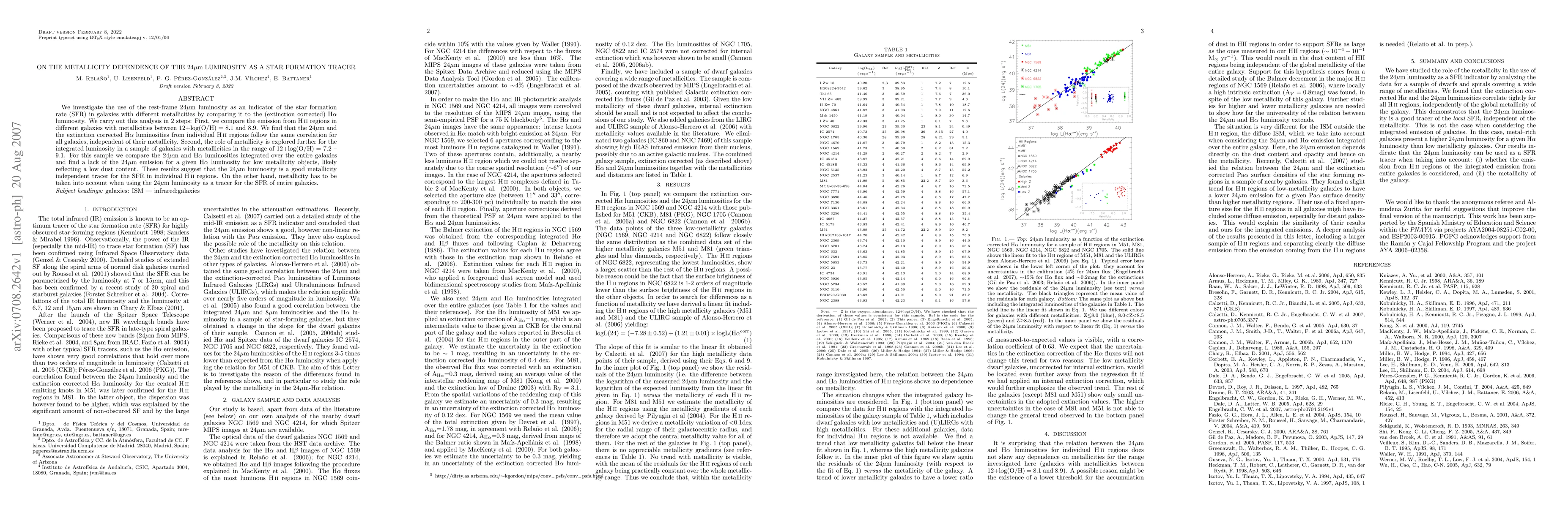 We investigate the use of the rest-frame 24microns luminosity as an indicator of the star formation rate (SFR) in galaxies with different metallicities by comparing it to the (extinction corrected) Halpha luminosity. We carry out this analysis in 2 steps: First, we compare the emission from HII regions in different galaxies with metallicities between 12+log(O/H) = 8.1 and 8.9. We find that the 24microns and the extinction corrected Halpha luminosities from individual HII regions follow the same correlation for all galaxies, independent of their metallicity. Second, the role of metallicity is explored further for the integrated luminosity in a sample of galaxies with metallicities in the range of 12+log(O/H) = 7.2 - 9.1. For this sample we compare the 24microns and Halpha luminosities integrated over the entire galaxies and find a lack of the 24microns emission for a given Halpha luminosity for low metallicity objects, likely reflecting a low dust content. These results suggest that the 24microns luminosity is a good metallicity independent tracer for the SFR in individual HII regions. On the other hand, metallicity has to be taken into account when using the 24microns luminosity as a tracer for the SFR of entire galaxies.