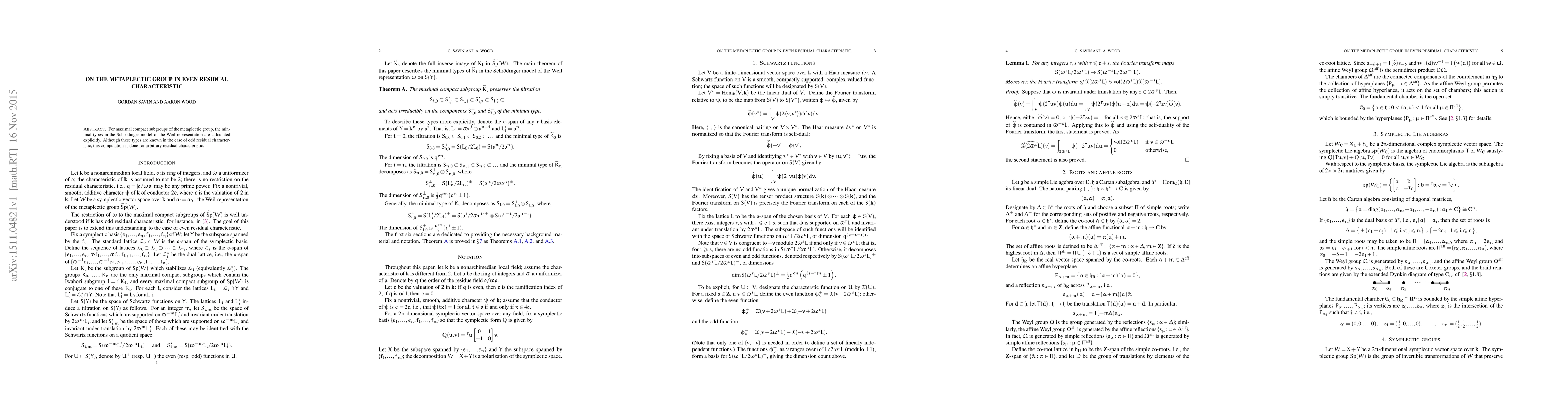 The paper presents detailed calculations and proofs for the action of metaplectic groups on Weil representation spaces, particularly focusing on maximal compact subgroups and their associated lattices.